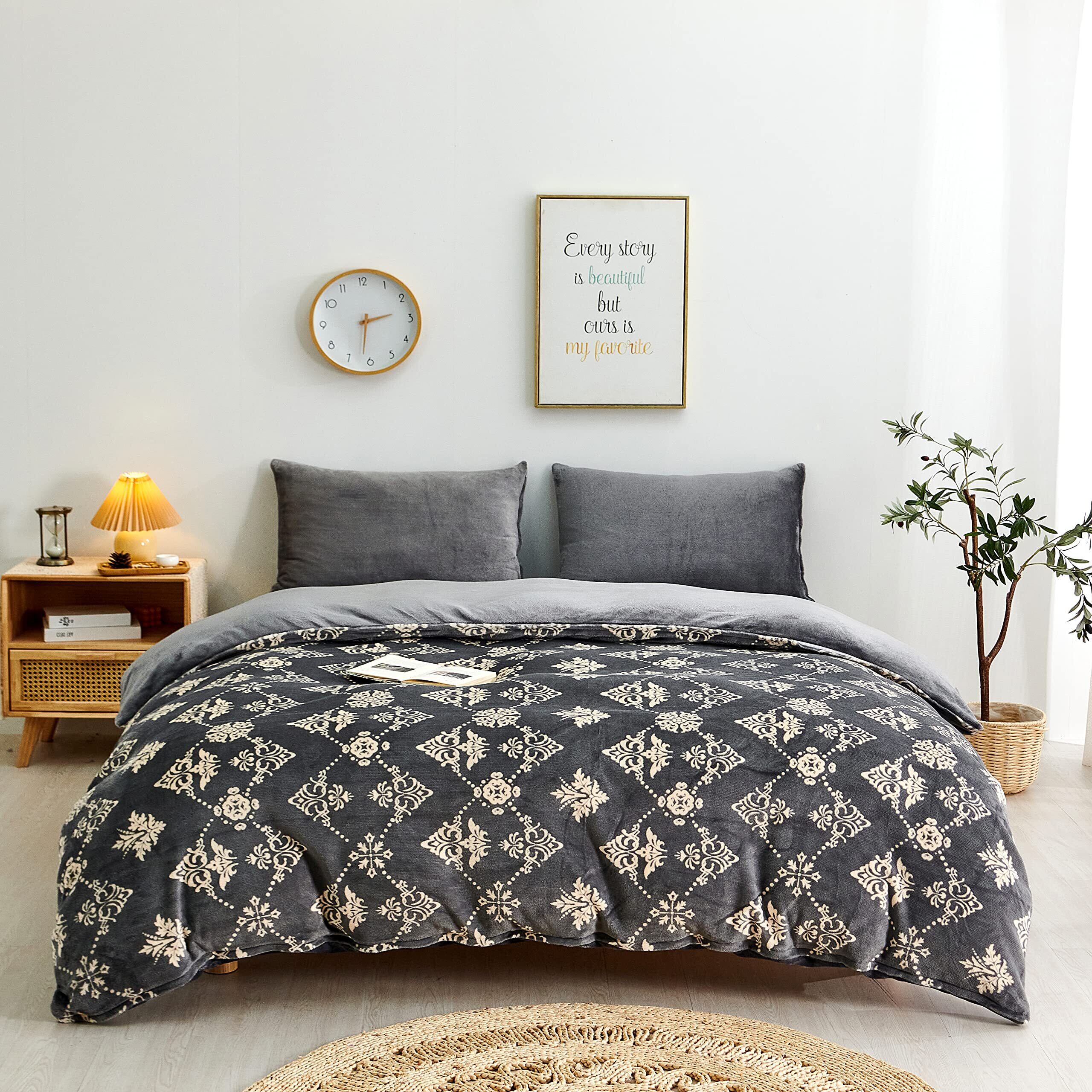 Tametra 掛け布団カバー あったか 布団カバー マイクロファイバー フランネル 毛布タッチ 冬用 北欧風 抗菌 毛玉なし 静電気防止 防寒対策 着脱簡単 通気性 暖かい 保温性 全開ファスナー 6ヶ所ひも付 洗える (セミダブル・170X210cm 欧風柄グレー)