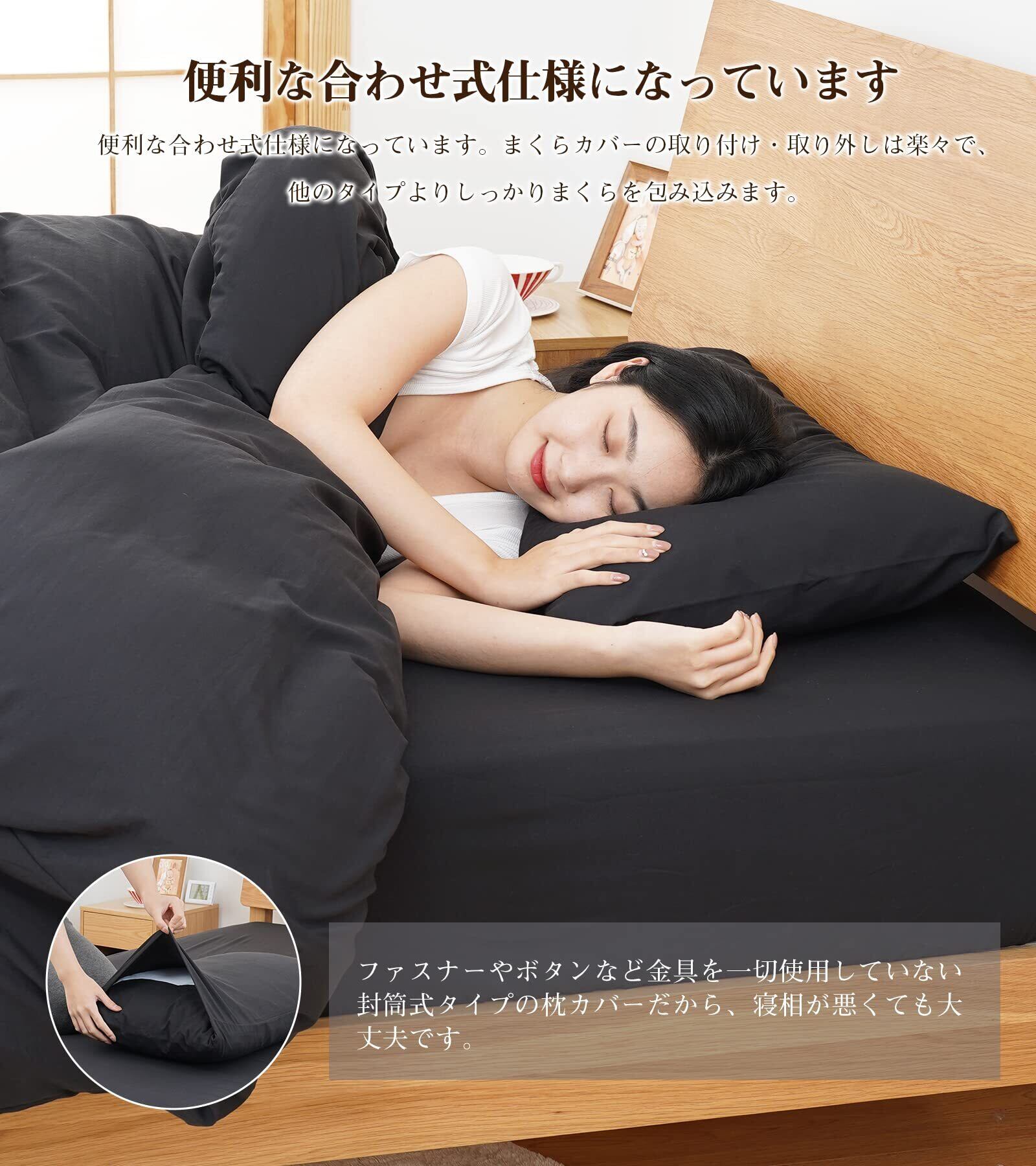 【超柔らかい・水洗い加工】 枕カバー 43 63 2枚組 ピローケース まくらカバー 封筒式 選べる9色 高密度生地使用 超吸水速乾 通気性 抗菌防臭 肌にやさしい 着脱簡単 洗える(43 63 ブラック)