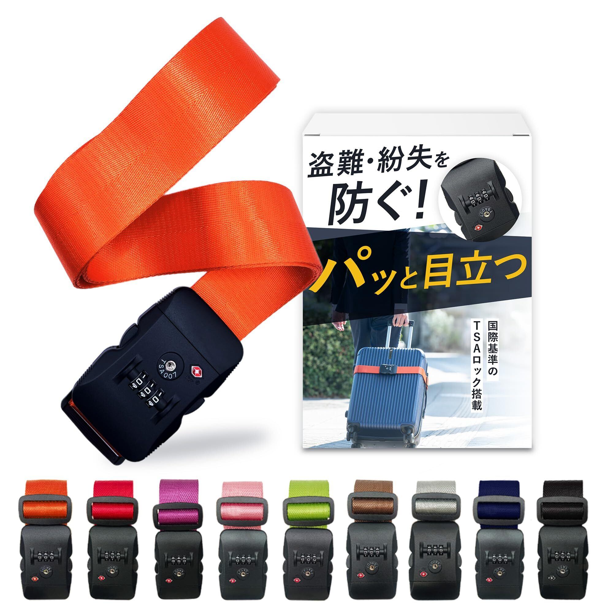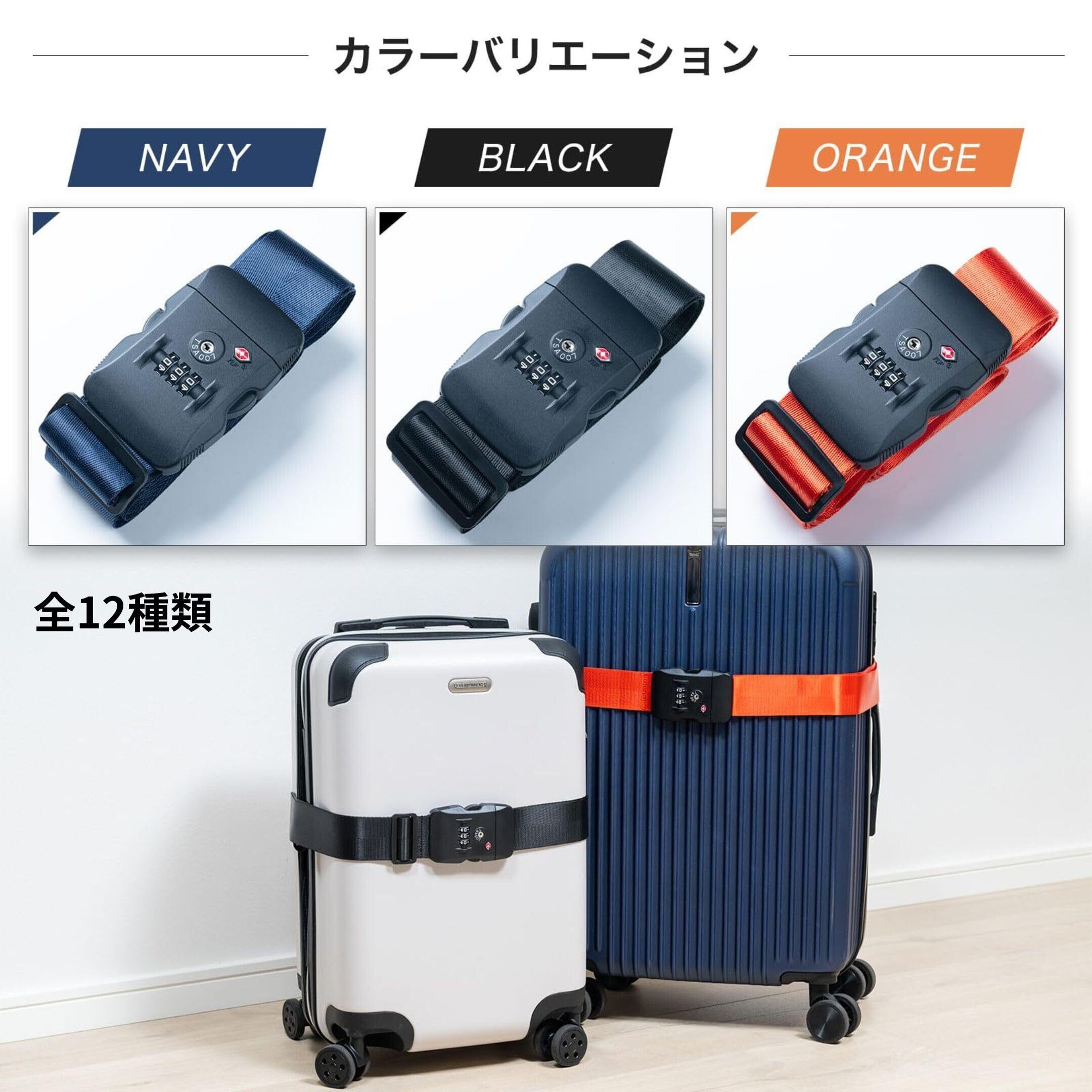 スーツケースベルト tsaロック スーツケースバンド 旅行 出張 3桁ダイヤル式 盗難防止 軽量 長さ調整可能 I字型 オレンジ ANY SELECT SHOP