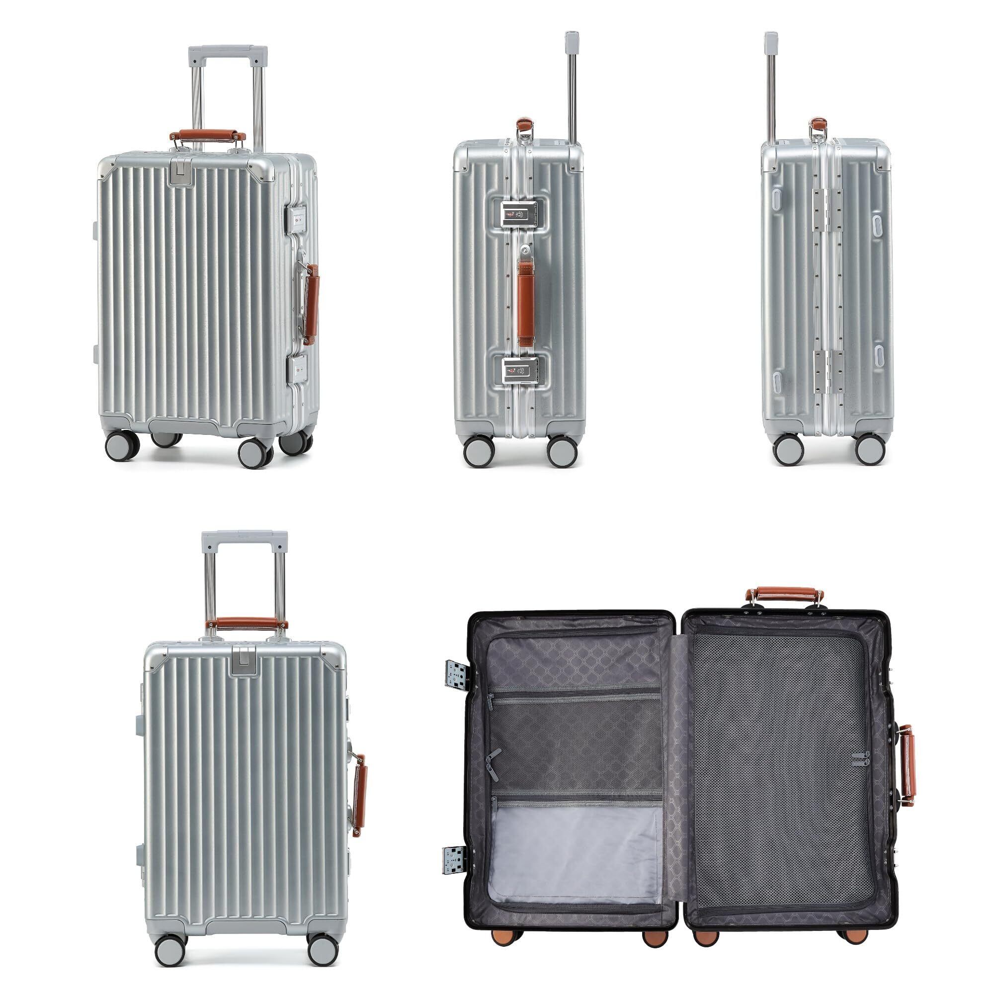 [Yuweijie] 新感覚!モダン!スーツケース キャリーケース 機内持ち込み 大型 軽量アルミフレーム式 キャリーバッグ 静音 ダブルキャスター TSAロック レトロ おしゃれなハンドル 疲れない設計 入学 海外旅行出張 Mサイズ シルバー 4-6泊 55L