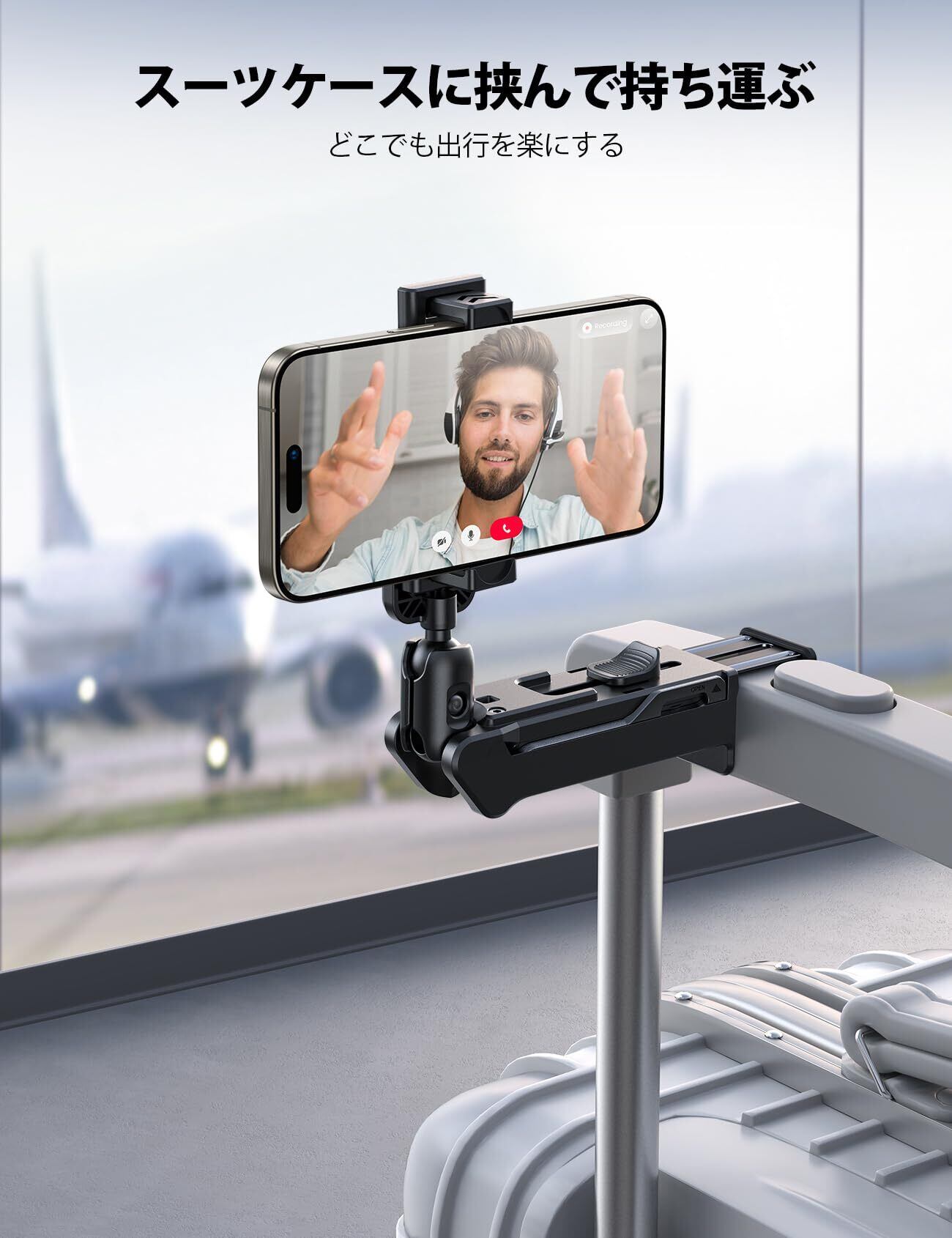 【長時間出行必携・両手解放】出行中にハンズフリーするスマホスタンドを新発売!飛行機のテーブルだけでなく、デスク、滑り止めのパットがあるグリップは安定感が増えるだけではなく、飛行機のテーブルや家具など挟むところを傷からきちんと守ります。長時間の旅に動画/ビデオを見るとき、自分でスマートフォンを持っていると手が疲れがちです。この旅行用スマホホルダーは、外出時に飛行機/新幹線のテーブルに設置して、両手解放することができ、スマートフォンやタブレットを機内で気軽に使えます。飛行機スマホスタンドを使わないときは、スーツケースに挟んでおくと持ち運び便利です。