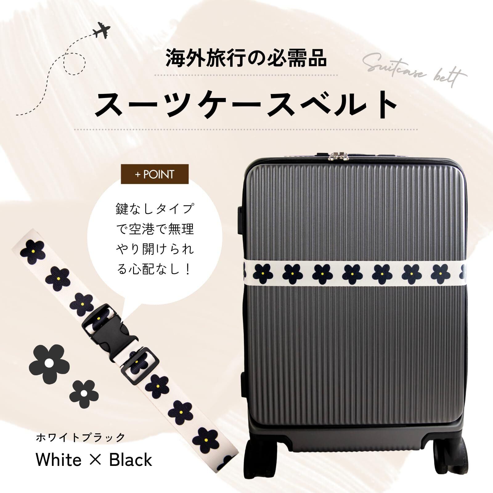 スーツケースベルト キャリーケース ベルト バンド suitcase belt 長さ74~138cm (白黒)