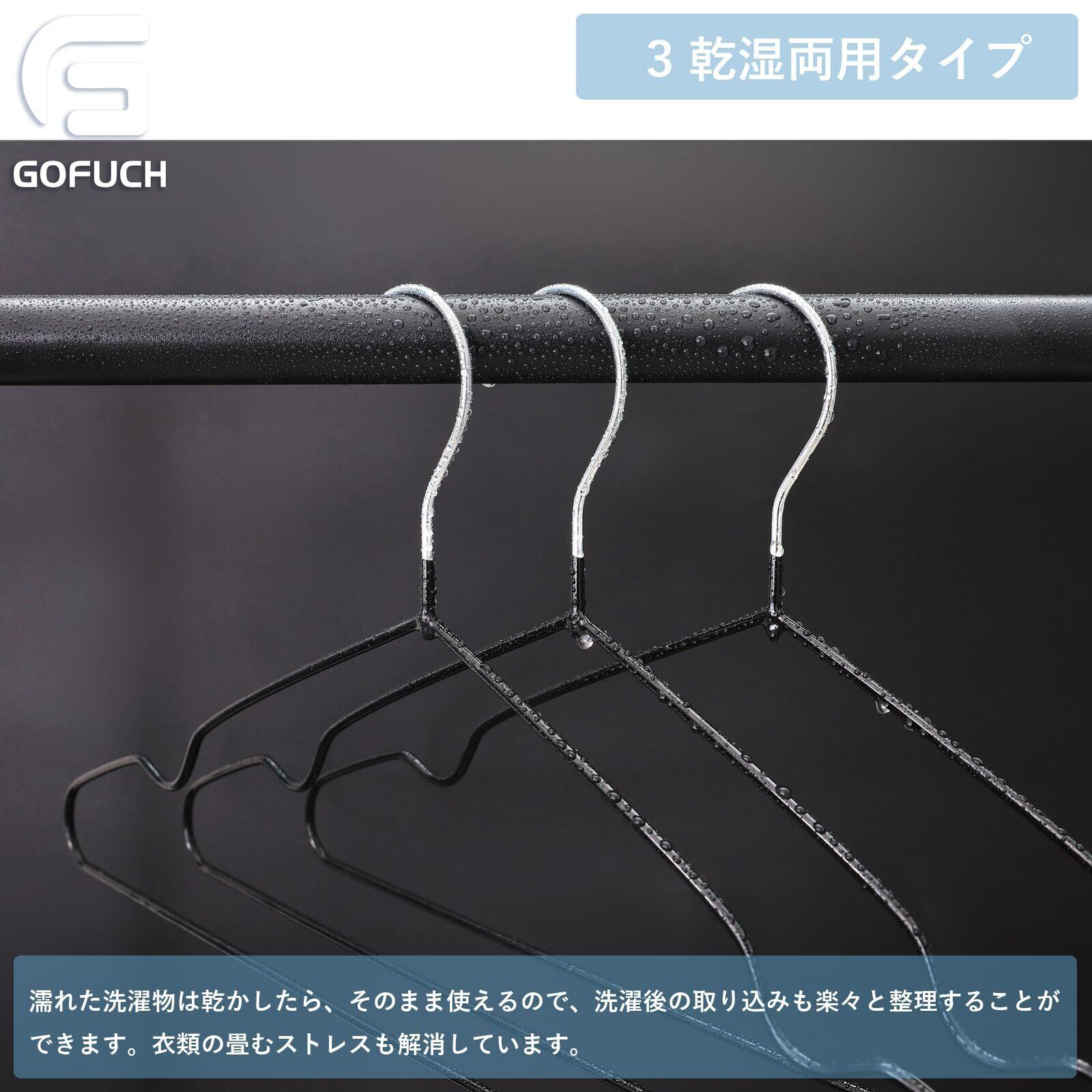 【洗濯と収納の兼用hanger】洗濯用としても使用でき、乾いたらそのままクローゼットへ。たたむ手間が省けるので取り込む手間も省けます。