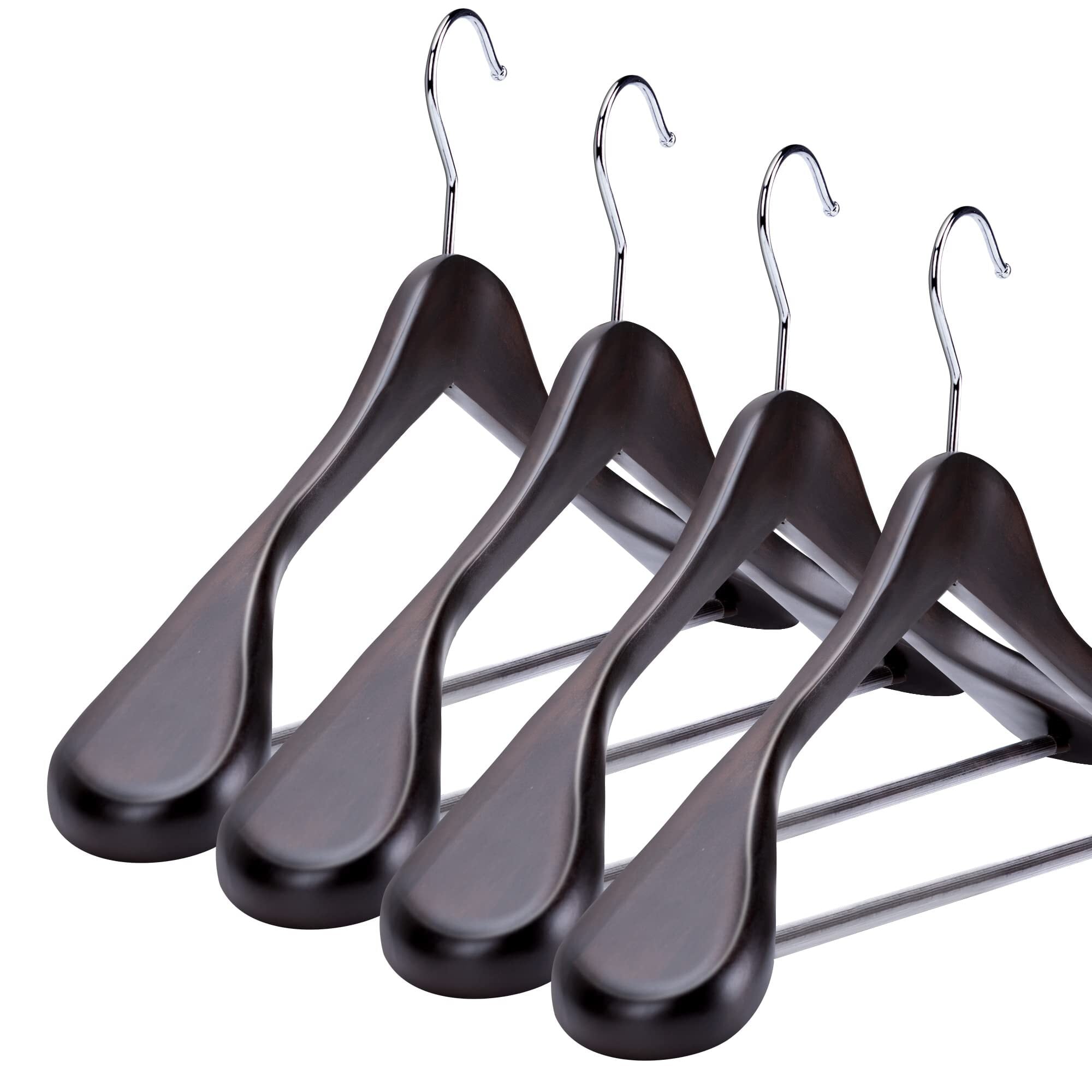【最高級×厚さ5.5でスーツにピッタリ】チチロバ (TITIROBA) 木製ハンガー スーツ ジャケット コート かたくずれ防止 滑り止め加工バー 4本組 スモークブラウン YJ-04-S 厚さ5.5cm(4本組)