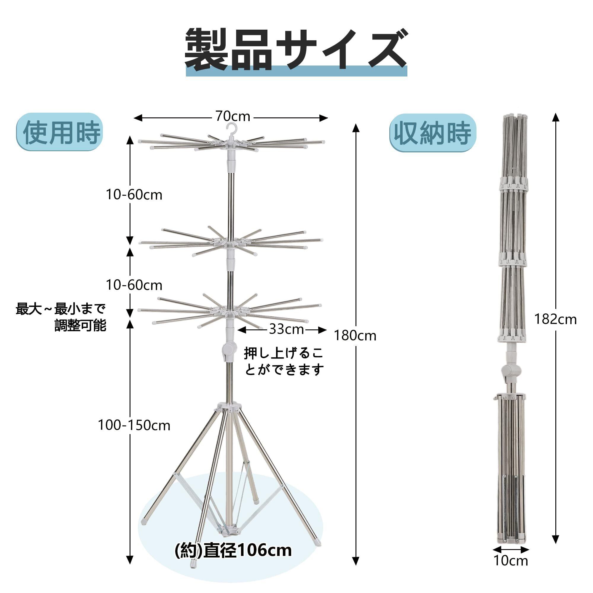 【製品仕様】サイズ:(約)直径106×高さ127~181.6cm;重量:2.19kg;材質:ステンレス+ポリプロピレン。