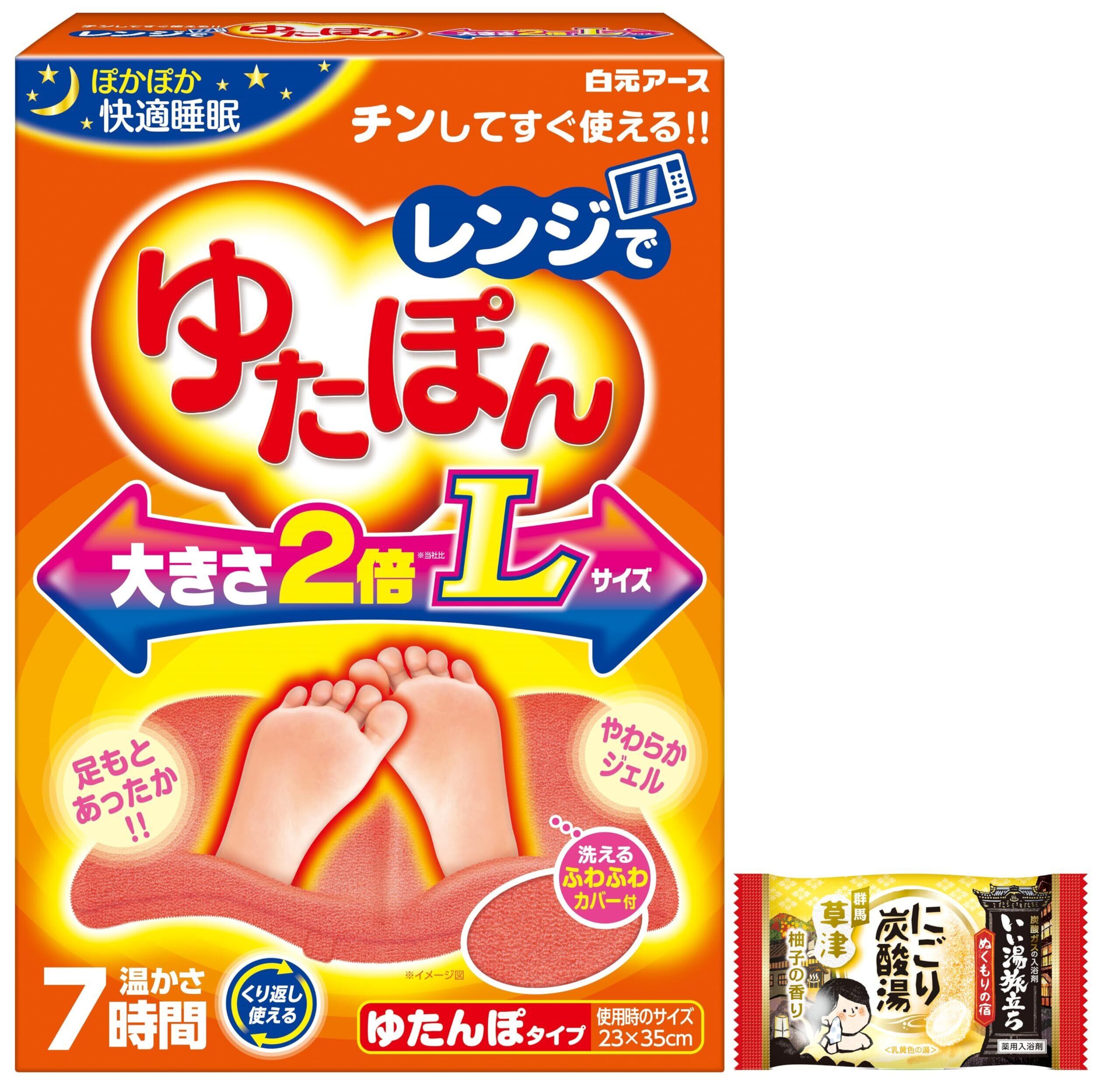 【限定】レンジでゆたぽん Lサイズ 入浴剤1個おまけ付き 洗えるカバー付 白元アース ゆたんぽ 湯たんぽ 温かさ7時間 足を温めるグッズ つま先 布団 電子レンジ