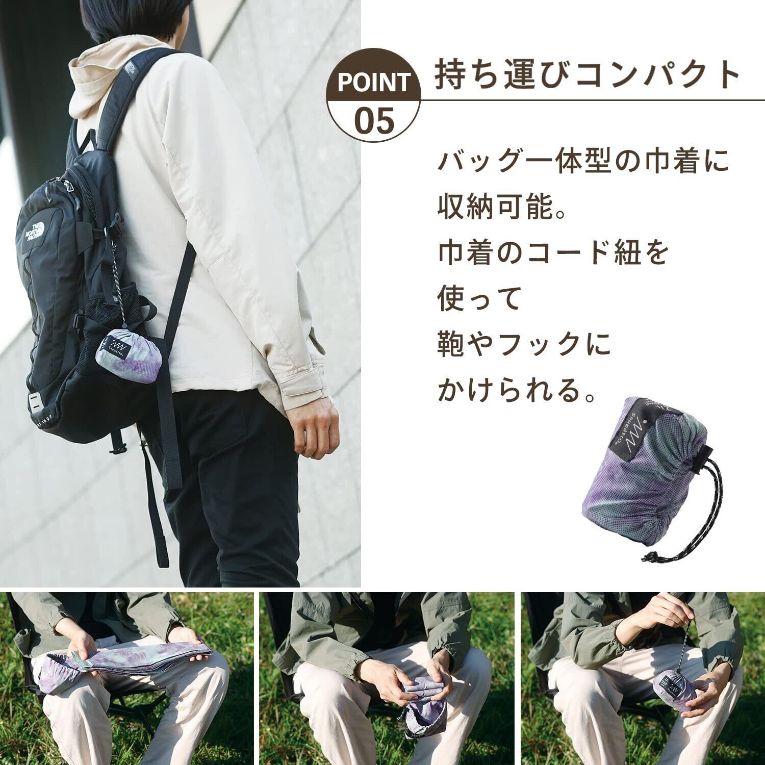 シュパッとキレイにたためて、バッグ一体型の巾着にコンパクトにまとまります。ファスナー付きで中身が見えず、巾着のコード紐を使って鞄やフックにかけられます。