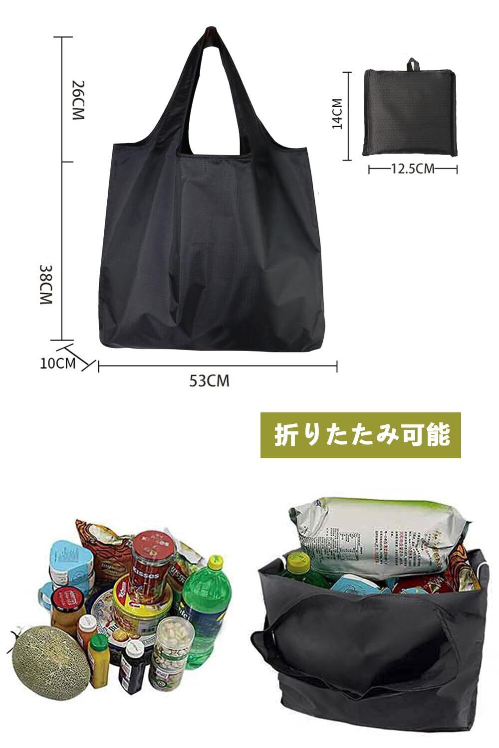 【エコバッグサイズ】折り畳み12.5cm*14cm、広げると53*38*10cm(持ち手部分 約26cm)。容量も大きく、沢山買い物しても余裕を持って入ります。