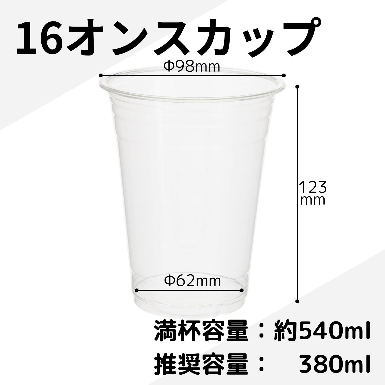 16オンス(480ml)の透明度の高い高品質プラスチックカップです。