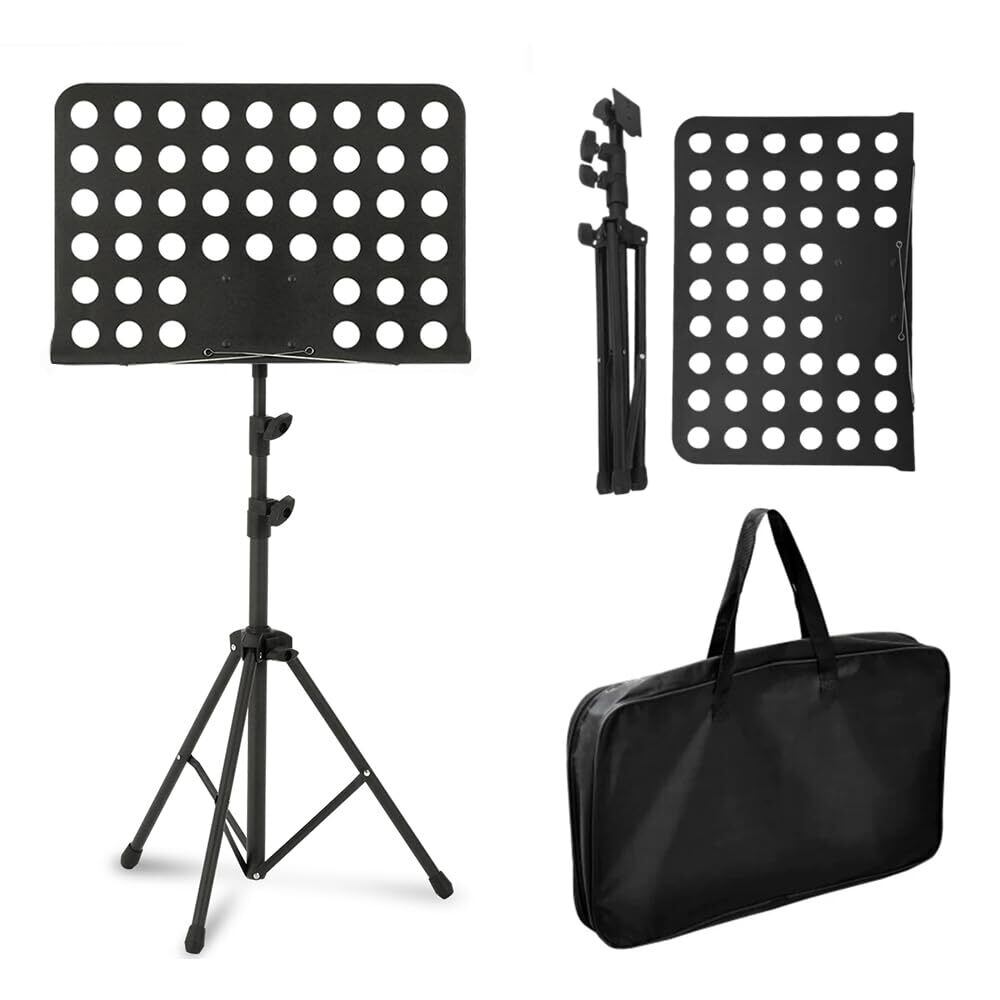 【商品詳細】譜面サイズ:42×28cm、高さ:65~150cm セット内容:譜面台×1、収納袋×1 重量:約1.2kg 材質:金属、ゴム