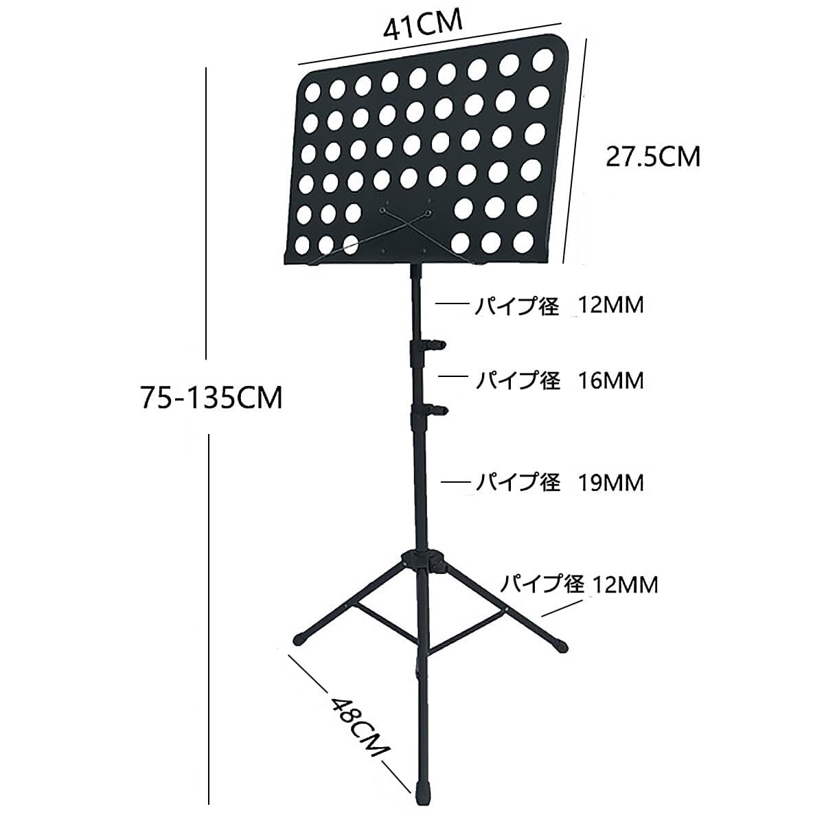 譜面台 折りたたみ式 楽譜スタンド 高さ調節可能(75~135cm)三脚安定 三つ折りデザイン 読書台 筆記台 多機能デスクトップスタンド