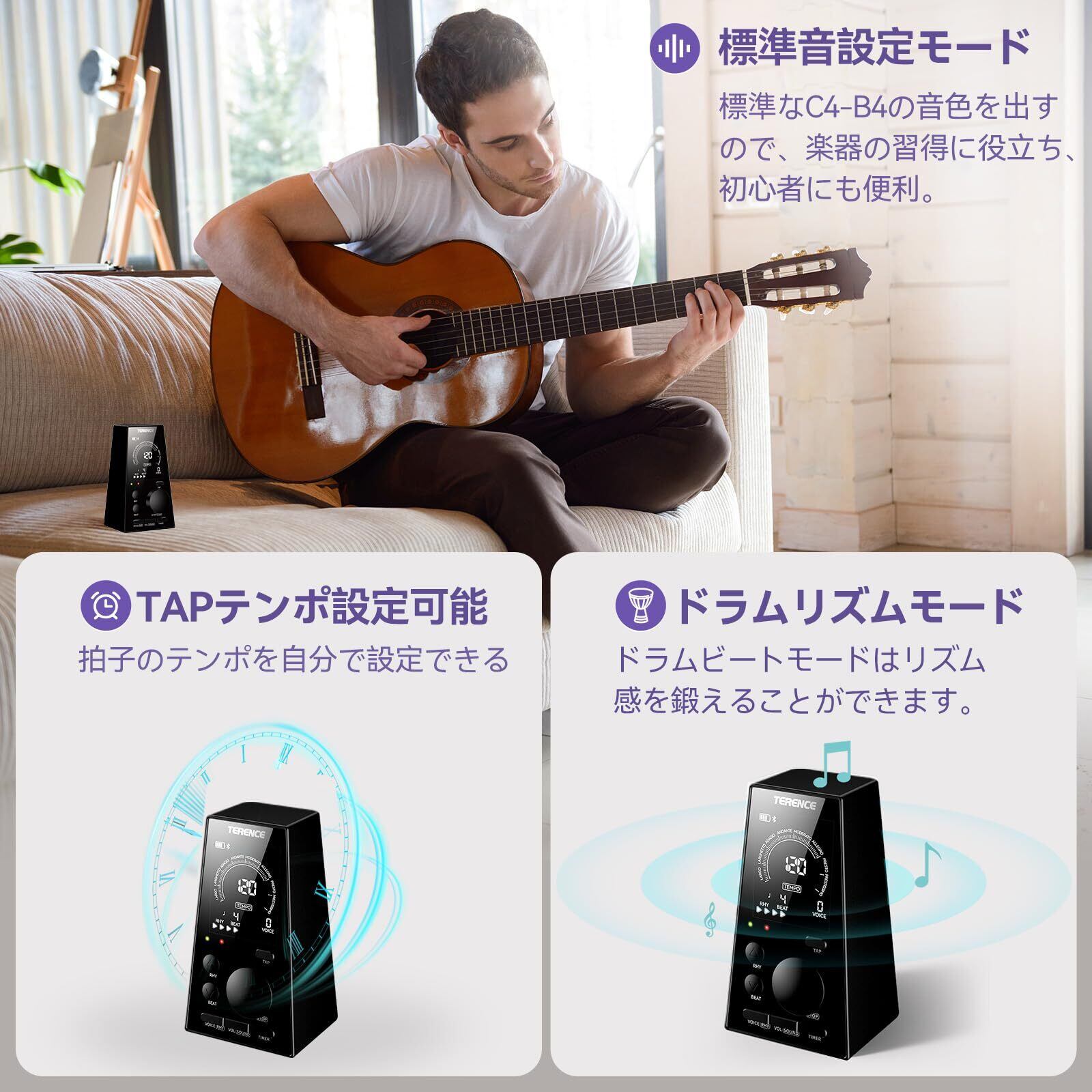 TERENCEメトロノーム 高精度 電子 デジタルメトロノーム 充電電池内蔵 C4-B4標準音&テンポ設定可能 音量調節 ドラムリズムモード 高音質 スピーカー内蔵 タイマー設定 ピアノ練習 楽器演奏用 初心者 ベテラン向き 3.5mmイヤホンジャック付き ピアノ/バイオリン/ギター/サックス/ドラムなどの楽器練習に対応(black)