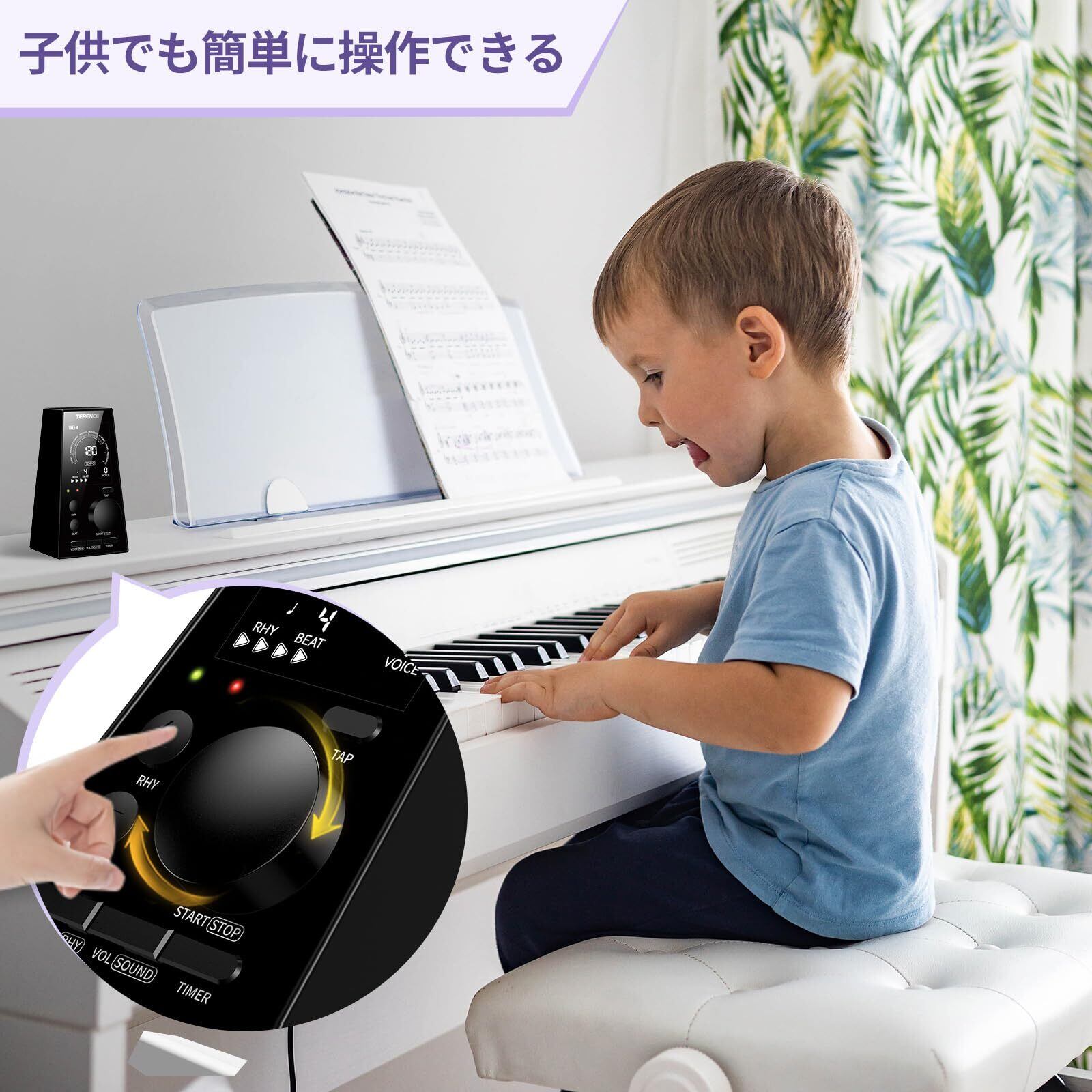 【初心者から達人までずっと使えるメトロノーム】この多機能電子メトロノームは、楽器の初心者から演奏の達人まで使用できる様々なモードを備えています。8種類のサウンドを内蔵しており、常に自分の演奏に最適なサウンドを選択することができます。10種類のビートで様々な曲を練習することができ、9種類のリズムで音楽の練習をより面白くすることができます。C4-B4の標準音モードは初心者の楽器習得にいます。