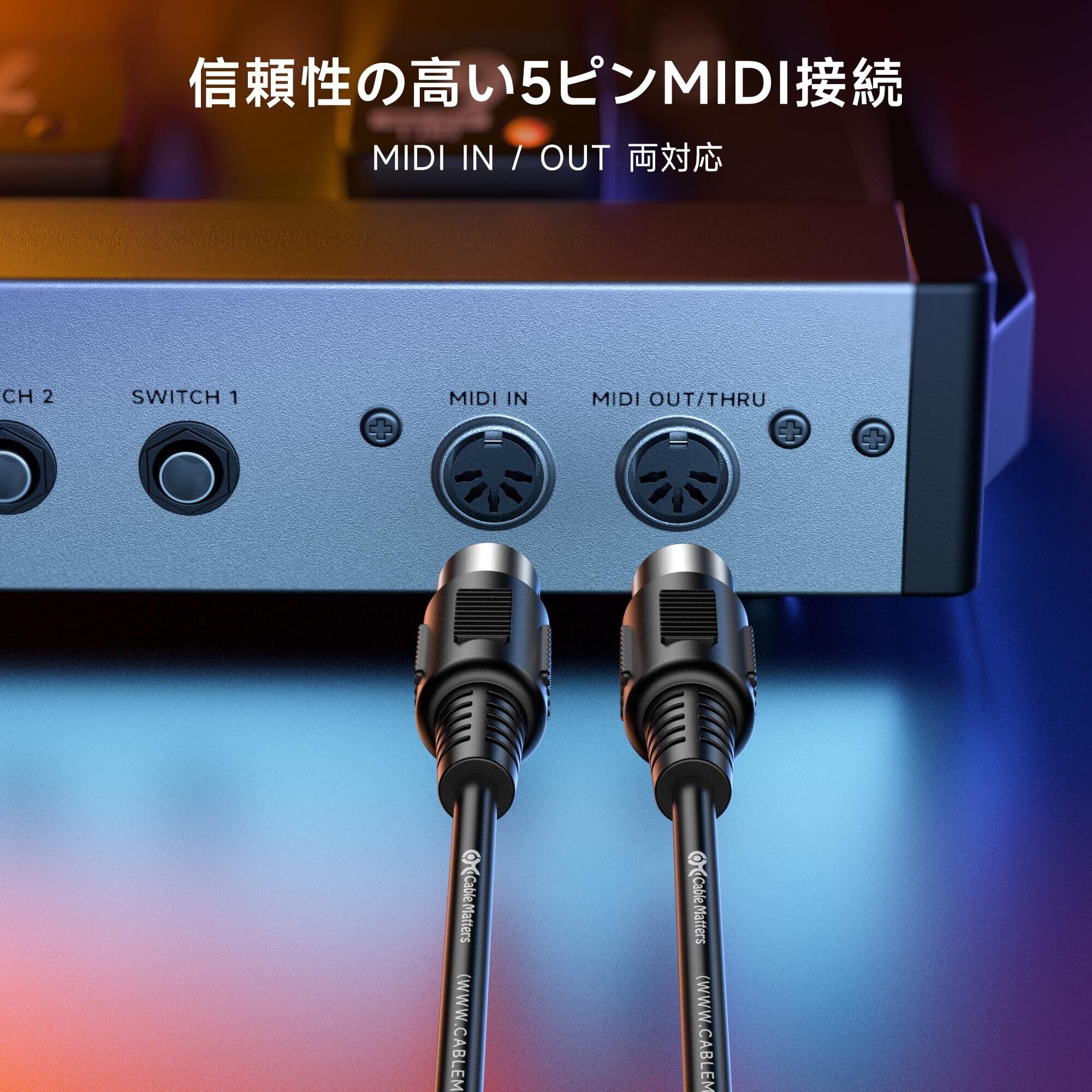 【安定した信号伝送】ストレート配線方式により、安定したMIDIデータ伝送を実現。機器間の正確な同期をサポートし、スタジオ録音やライブ演奏でも安心して利用可能。
