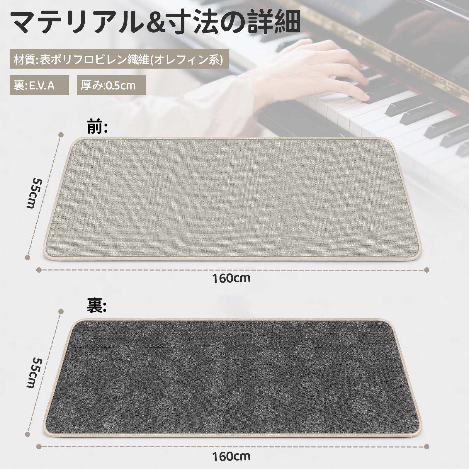 サイズ:幅160×奥行55×厚み0.5cm。耐久性を高めるために厚い織物で作られています。ドラムマット耐摩耗性と防汚性、糸くずが出ない、ボールが出ない。