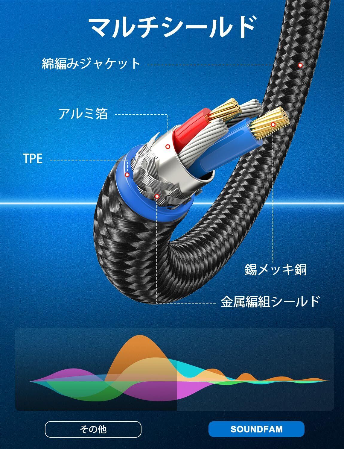 【信号伝送特性】SOUNDFAMオス-XLR-3.5mmケーブルは99.95%の高純度銅線コアを使用し、オーディオ信号伝送をより安定させ、伝送損失を低減し、純粋な元の音質を復元します。