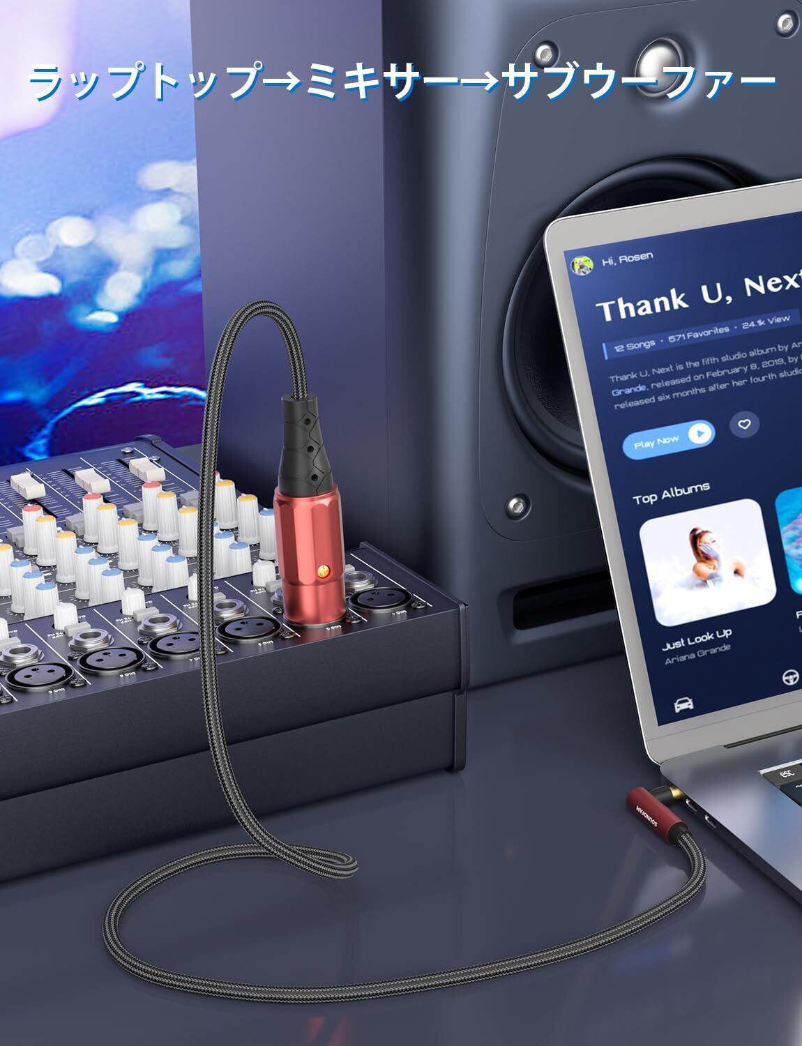 【接続部設計】TRS 3.5mm-XLRオスケーブルはユニークな90度直角3.5mmコネクタデザインを採用し、新しい接続方法を提供します。