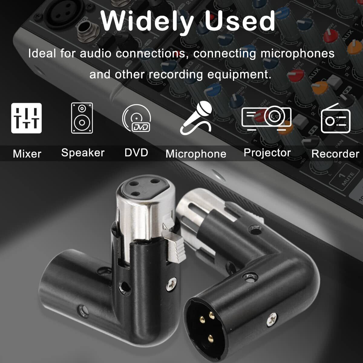 ケーブルの混乱を解消: この直角XLRアダプターは、ケーブルを整理し、ミキシングコンソールや他の楽器に干渉することなく、すべてを希望の方向にルーティングします。