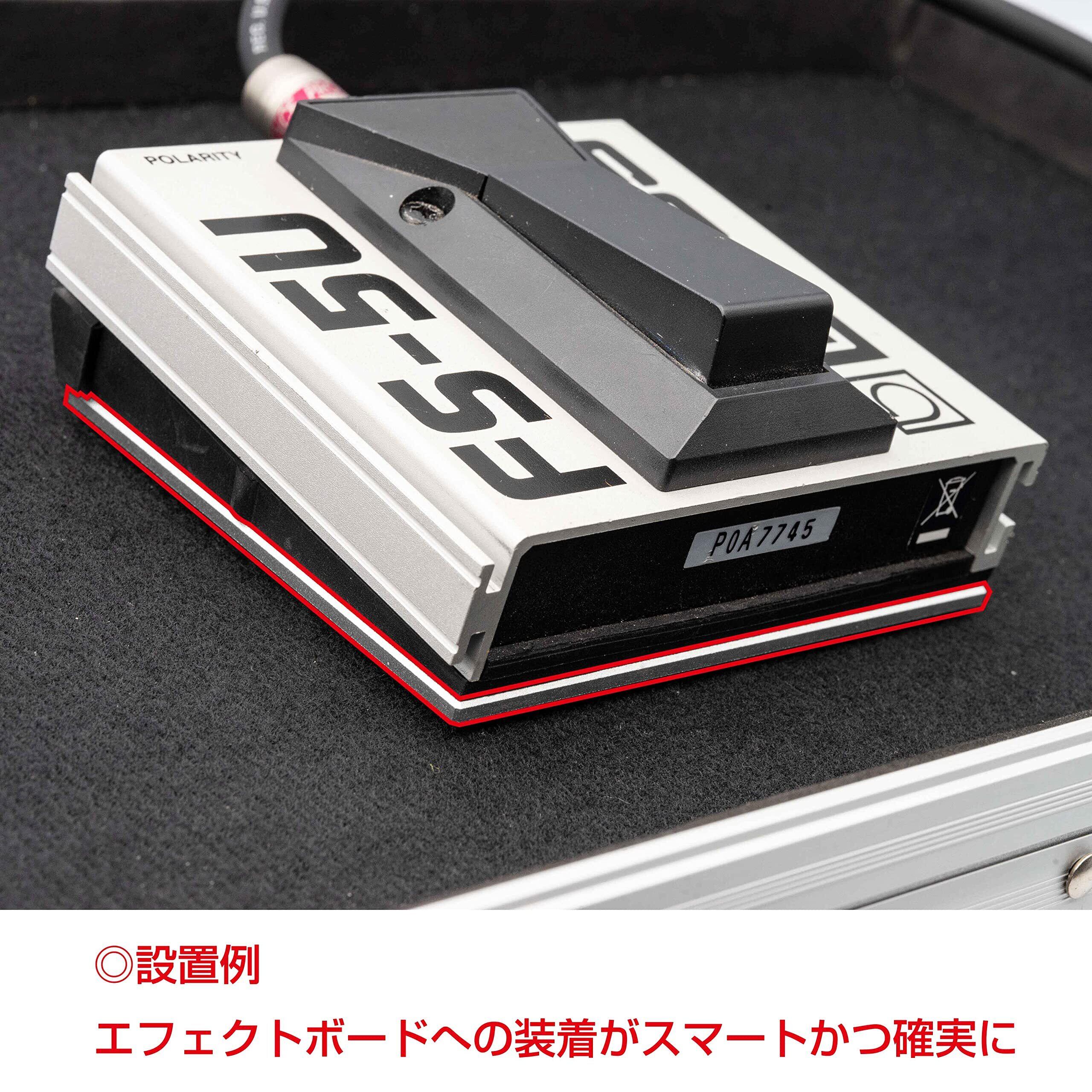BOSS FS-5シリーズの底面は凹凸があるラバー素材で、マジックテープの粘着面がつきにくいため、エフェクトボードへの設置が確実でない場合があります。そこで、本製品を使うことで底面をフラットにすることができ、マジックテープを貼ることでエフェクトボードへの設置がより確実になります。