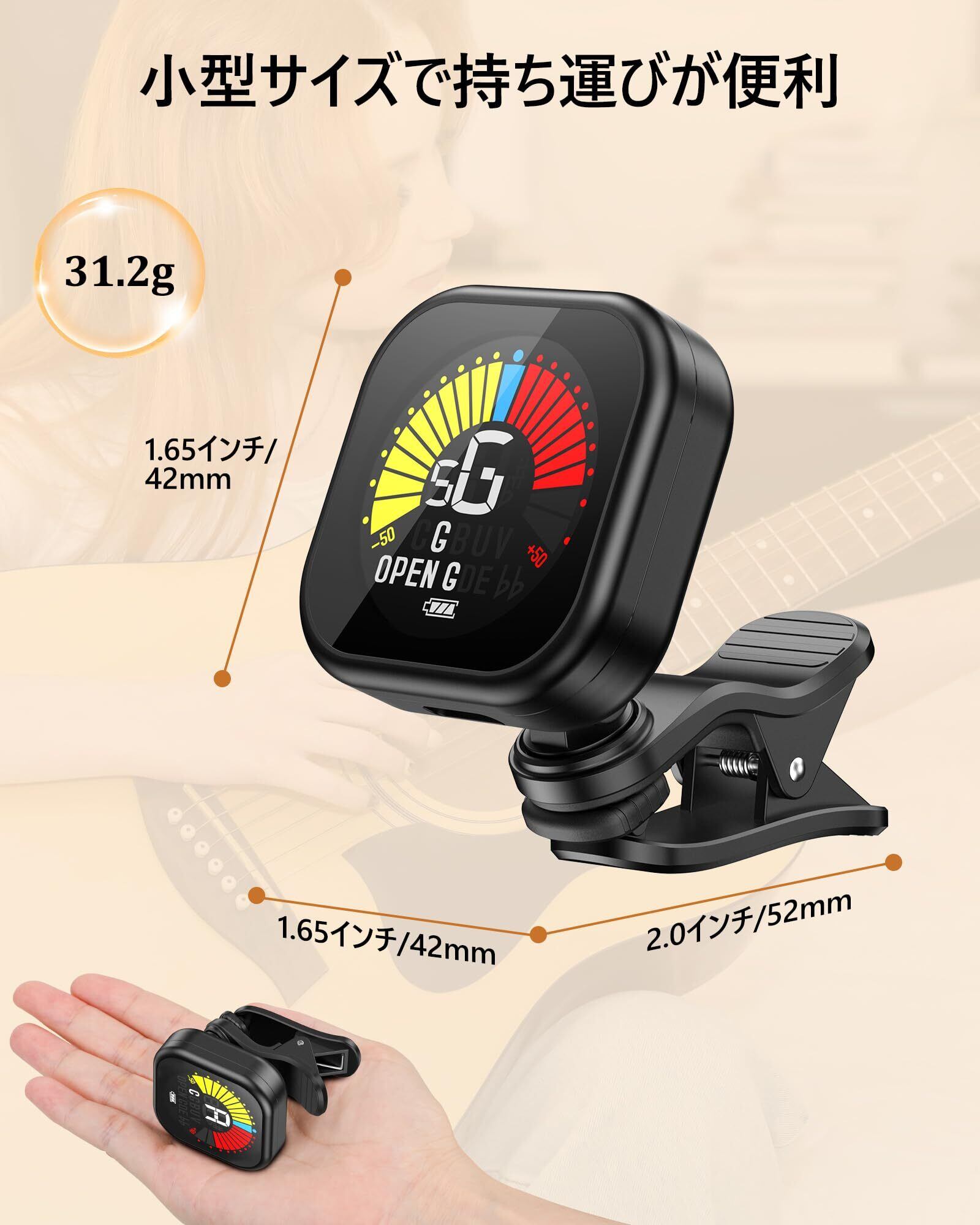 New Bee 充電式ギターチューナー GT30 高輝度LCD画面 360°回転 高速精密チューニング 小型 自動オフ機能