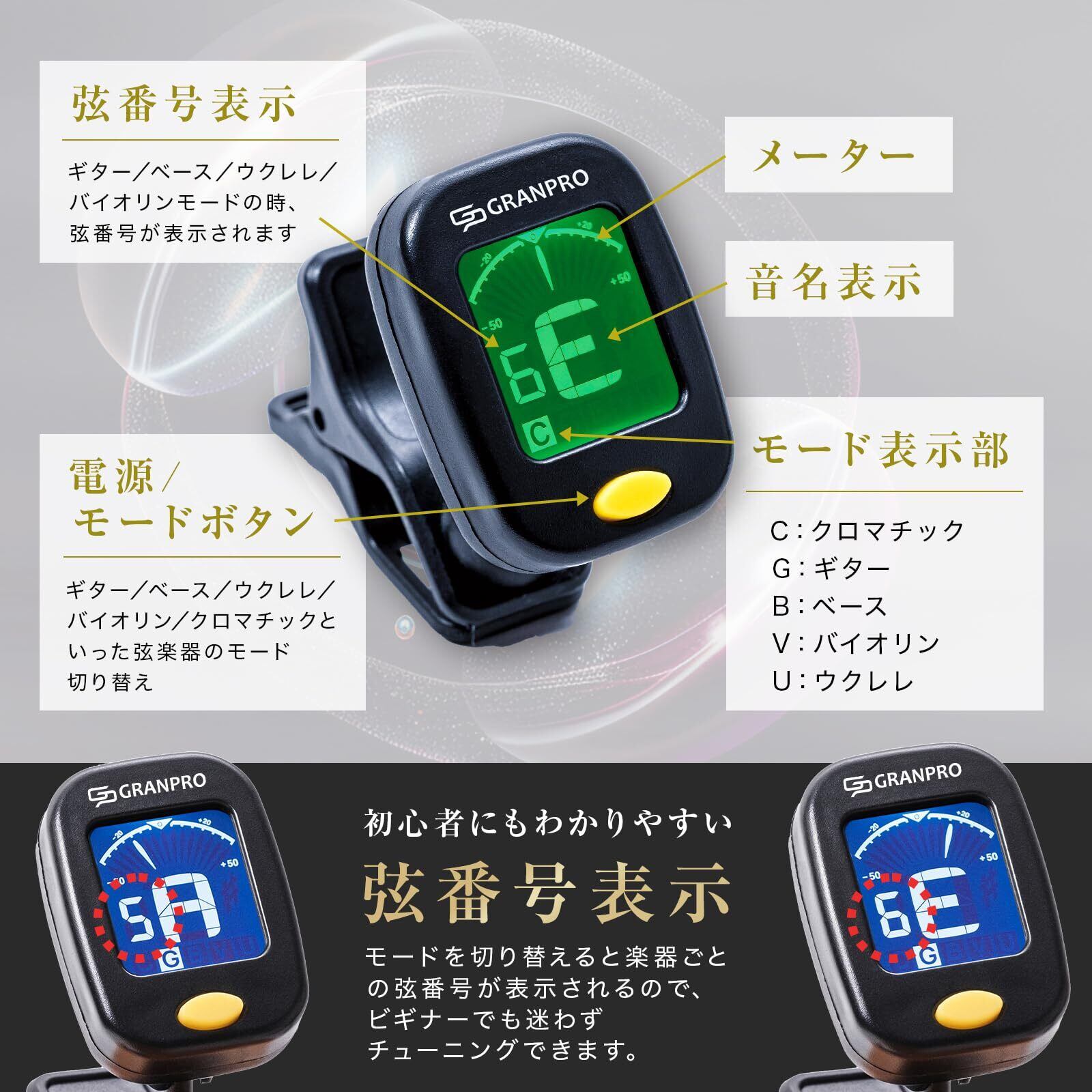 GRANPRO ギターチューナー チューナー ベース・ウクレレ・ヴァイオリンにも対応 クリップ式チューナー 国内正規品【my best1位掲載!】(ビートル)