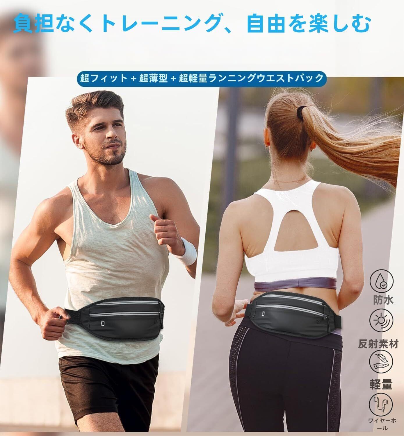 ウエストバッグ ランニング ポーチ【2026新モデル 軽量&薄型】多機能スポーツポーチスマホ対応 防水 伸縮性 男女兼用 旅行・通勤・ジョギング用 ウエストバッグ 小物収納ポーチ ウォーキング スマホ