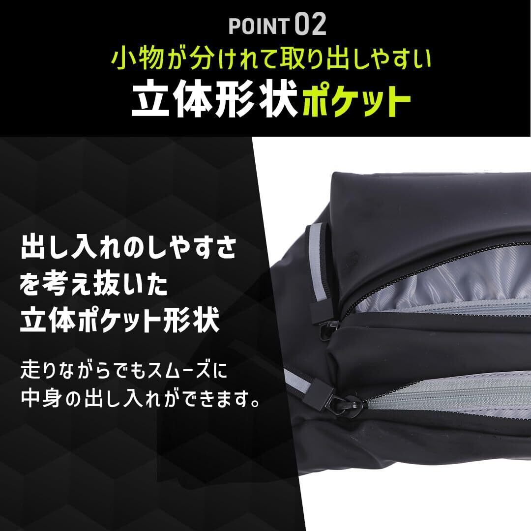 大容量3ポケット収納 スマホ、鍵、財布、エナジージェルなどを整理して収納可能。表ポケットは仕切り付きで小物の取り出しもスムーズ。