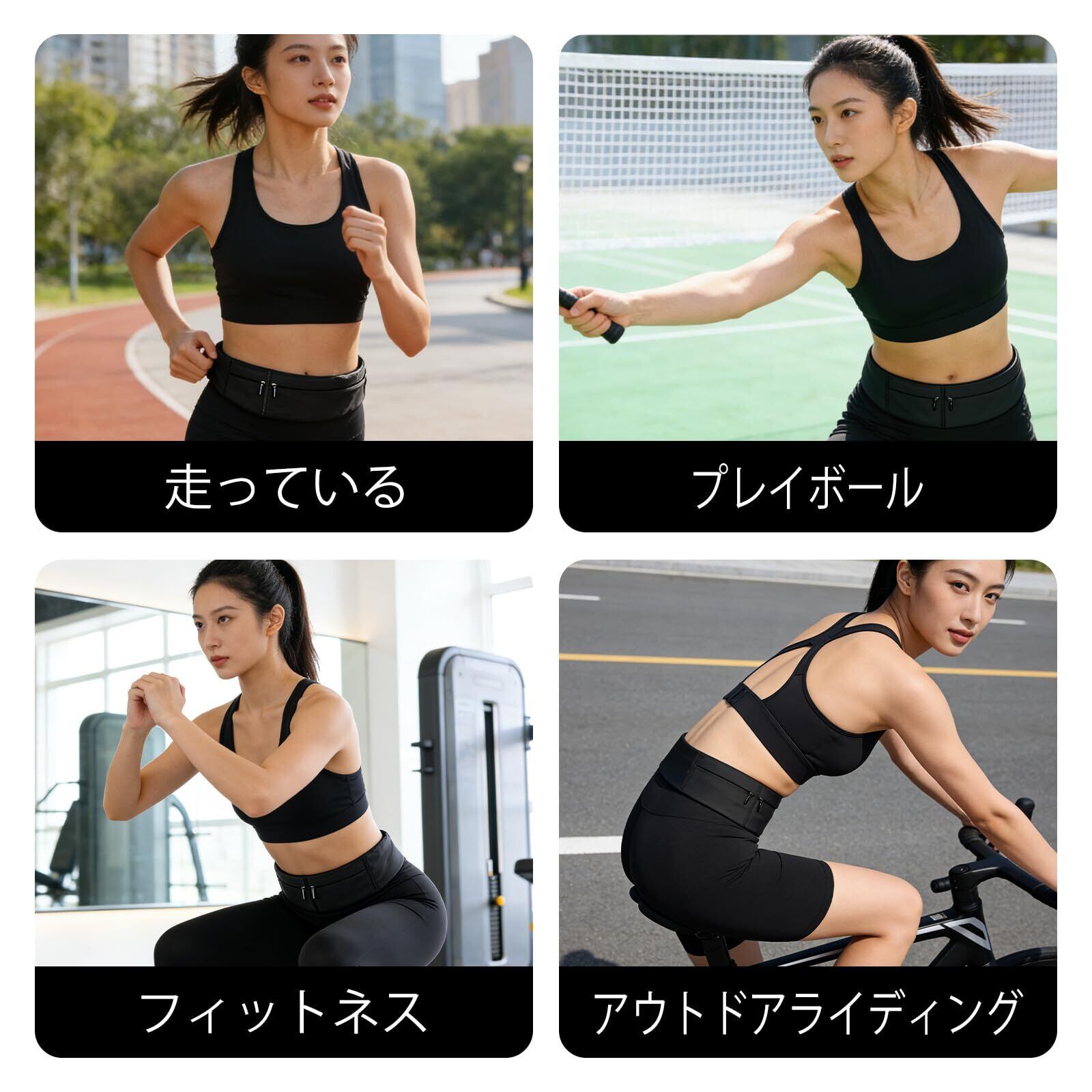 【揺れない・安定感良いランニングポーチ】高強度のマジックテープベルトを採用、長時間走っても緩くしない、ベルトの長さを細かく調整でき、二つサイズ用意(S:ウエスト60-85cm対応、L:ウエスト80-110cm対応)、体型を問わず男女兼用タイプです。