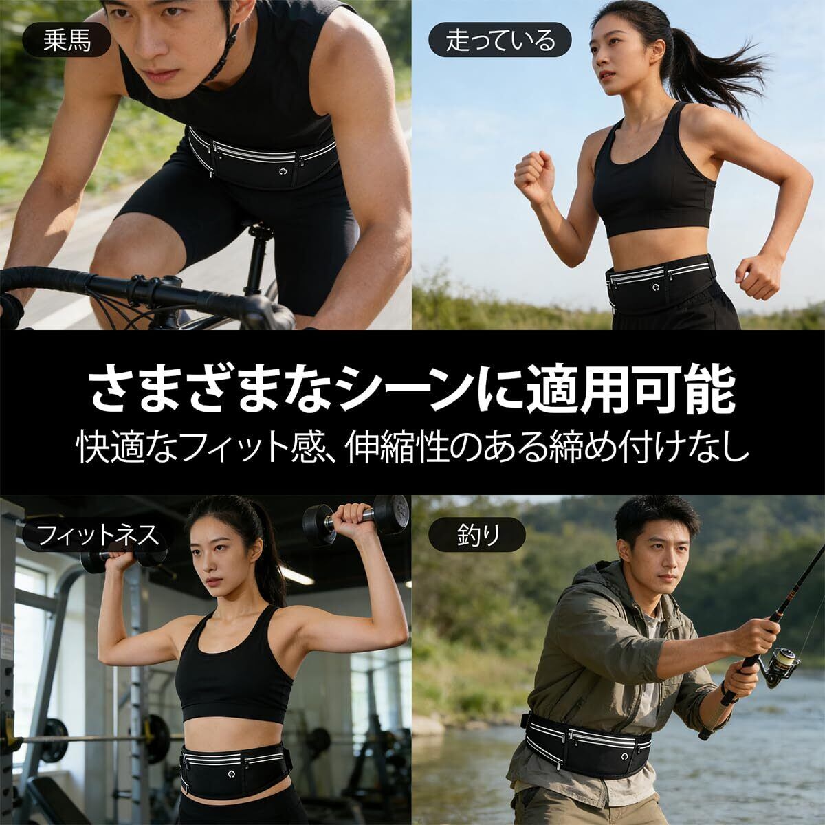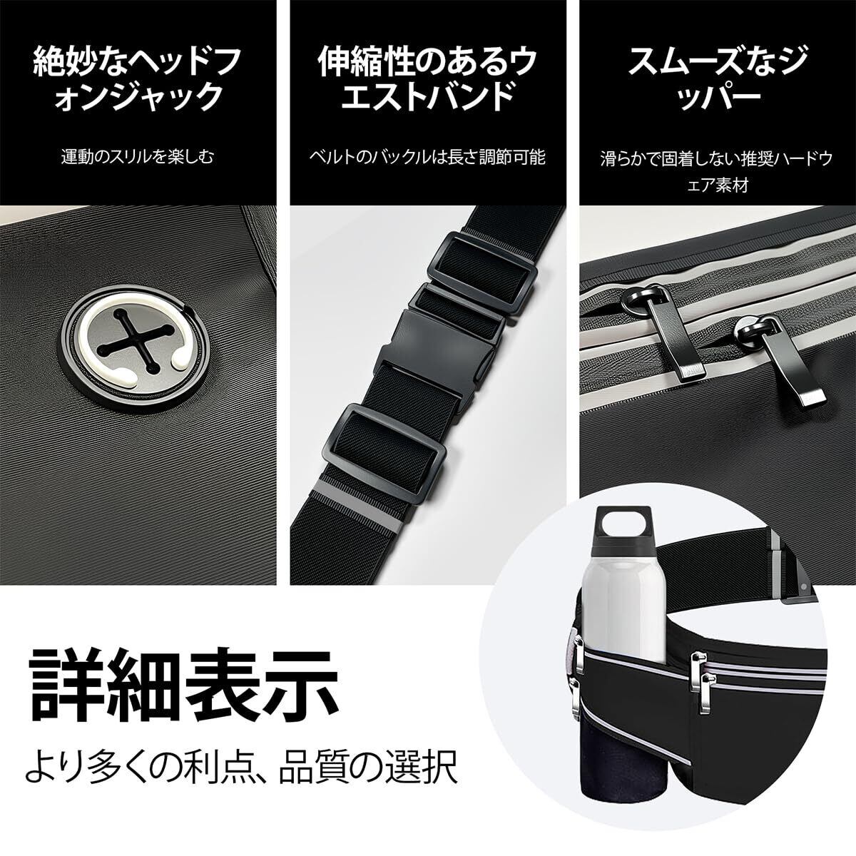 wangyue ランニングポーチ ウエストポーチ 大容量 ドリンクホルダー付き スマホ収納可能 ボディバッグ 軽量 快適 アウトドアスポーツ用 (ブラック)