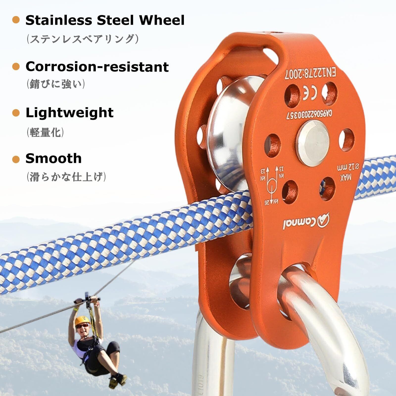 【強度】- マイクロプーリ破断強度: 26kN、最大ロープ直径: 12mm。人や物を引き上げる時に省力化にします