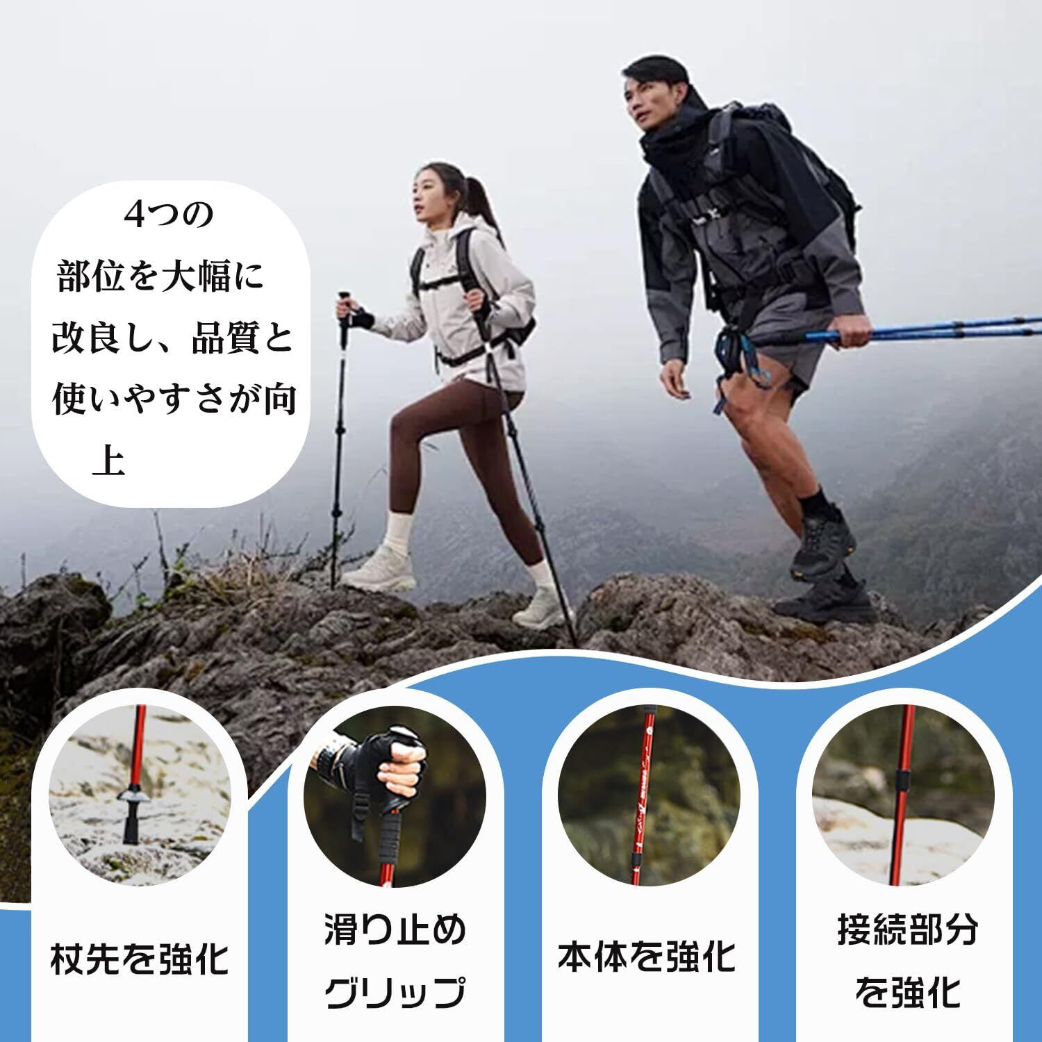 【アルミ合金採用 & レジャー用途に十分な強度】 扱いやすいアルミ素材を使用し、日常的なハイキングやレジャーシーンで安定したサポートを提供します。過度な負荷を想定した設計ではありません。