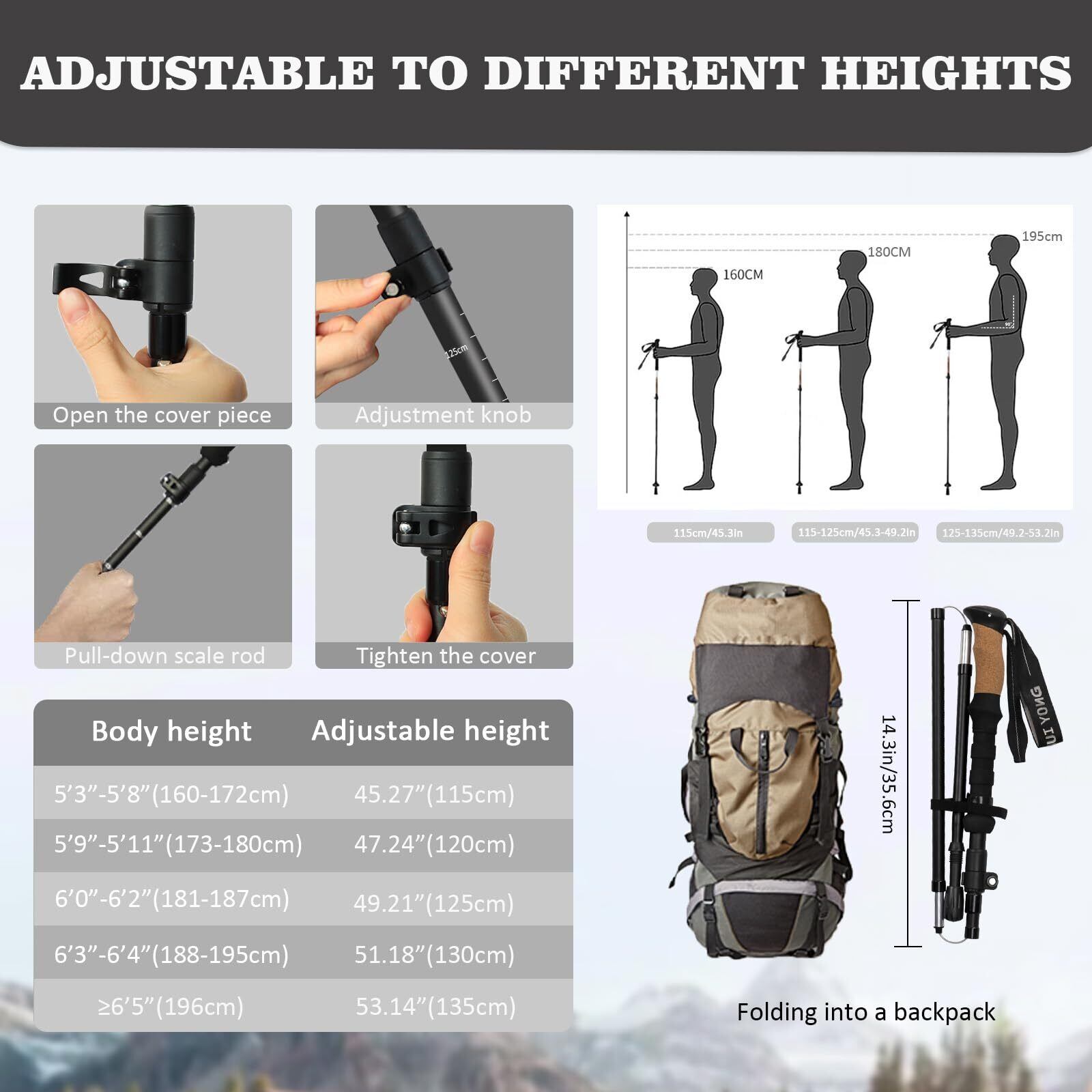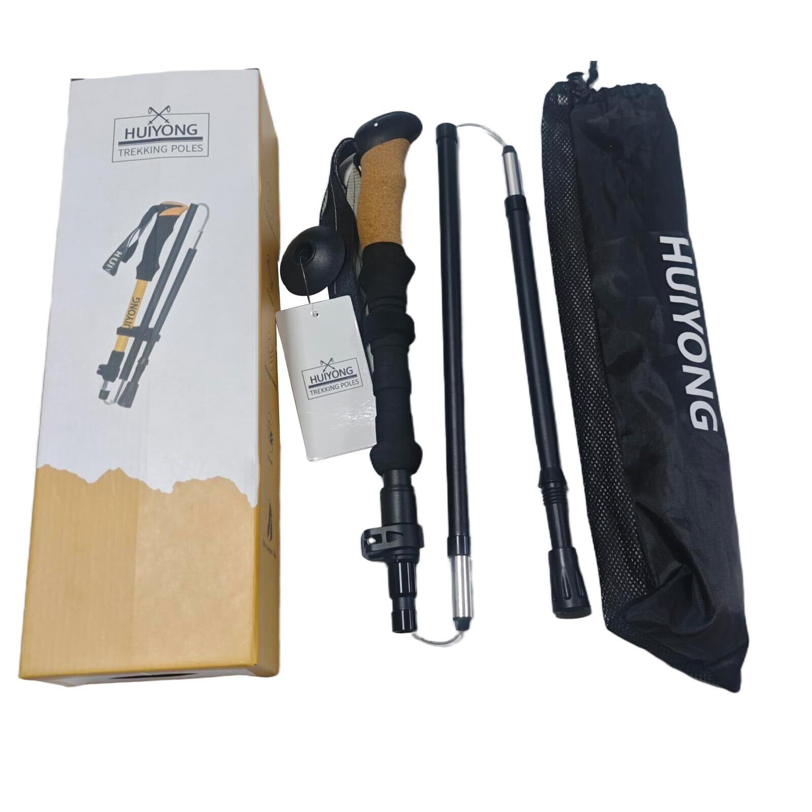 HUINING コルクハンドル付きハイキングポール、折りたたみ式ハイキングポール、望遠鏡、男性用と女性用ノルディックウォーキングポール、トレッキングポール、アルミニウム製の超軽量トレッキングポール、たくさんのアクセサリー付き。
