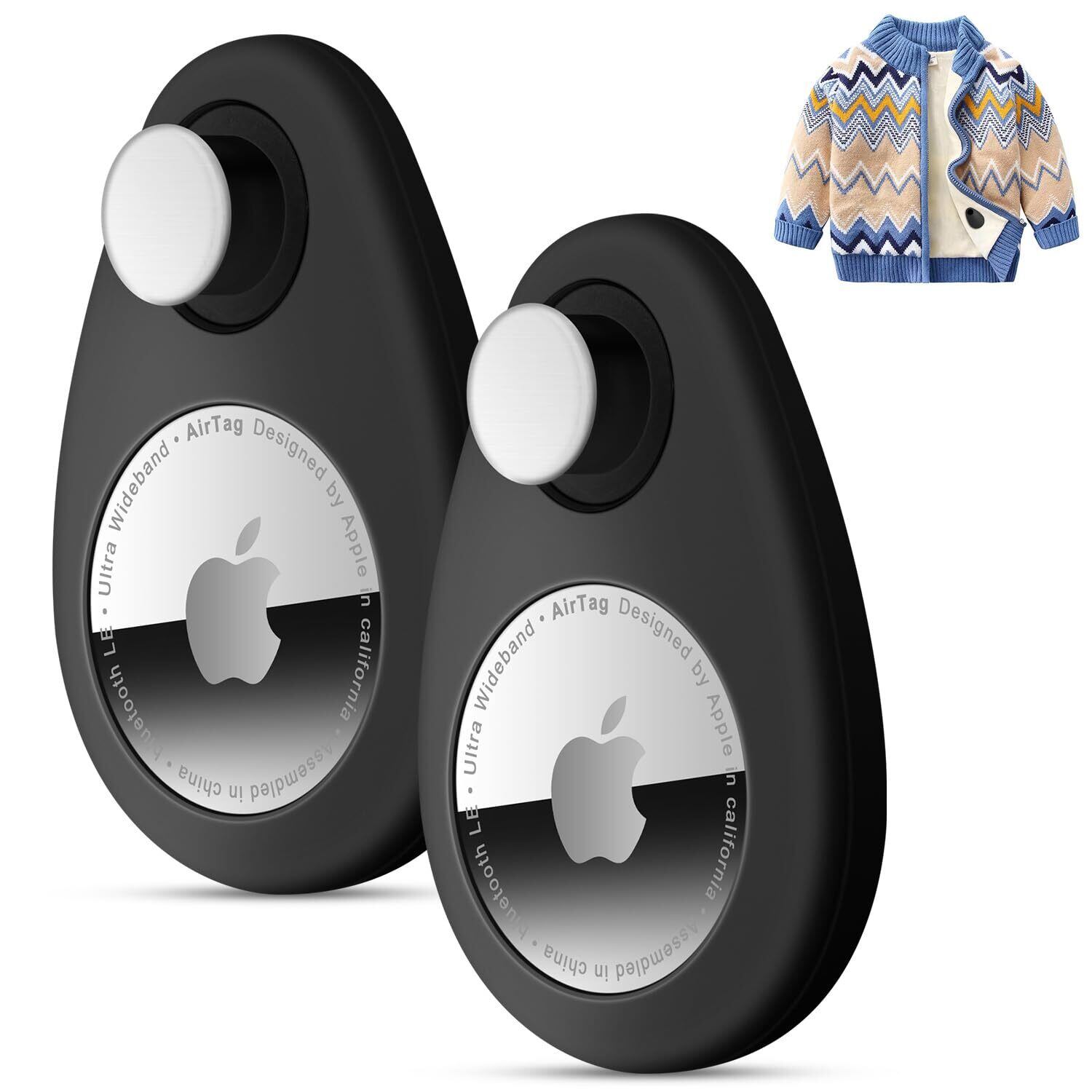 2パック エアタグホルダー 子供用 隠し GPSトラッカーケース ピン付き取り外し防止エアタグシリコンケース 子供、高齢者、ペット、バックパック、荷物に最適 (黒、黒)