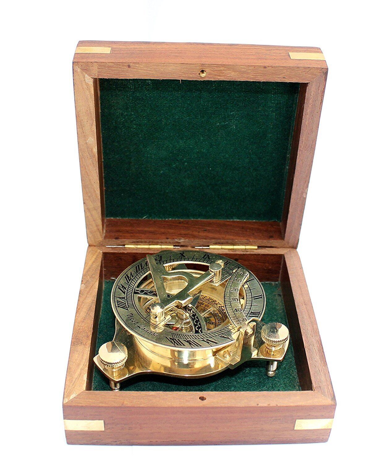 3.5インチ ノーティカルウエストロンドン日時計コンパス 手作りの木製ボックス付き 素朴なヴィンテージホームデコレーションギフト