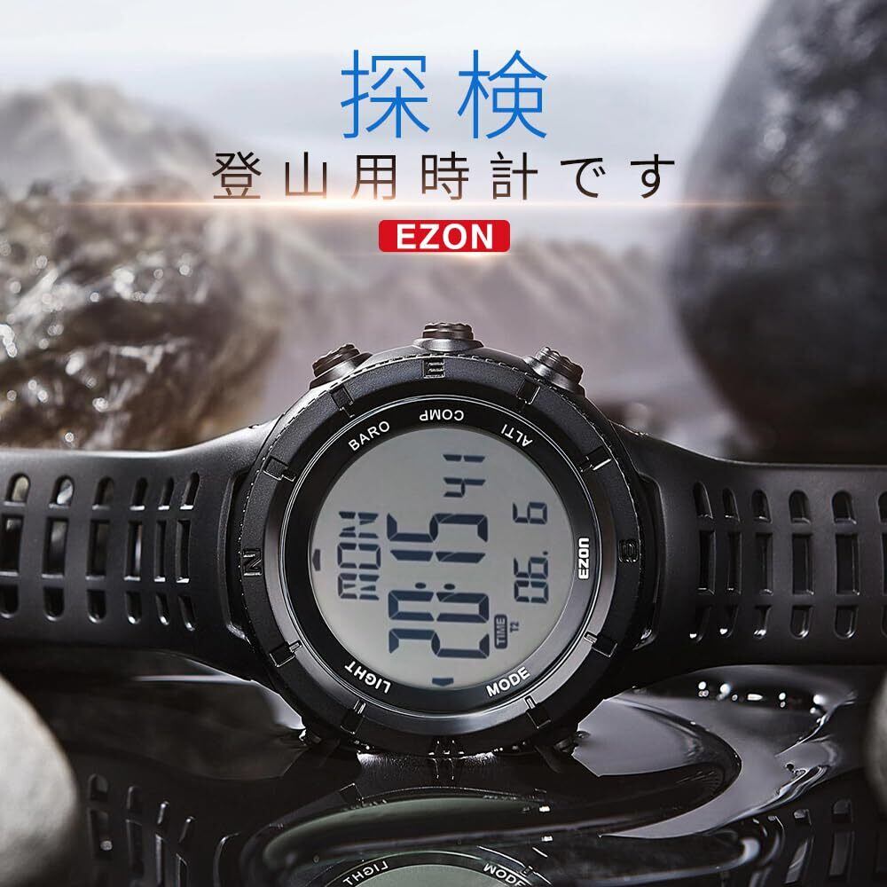 EZON H001 軍用 登山用腕時計(メンズモデル)、タクティカルアウトドアアドベンチャー腕時計。高度計、気圧計、コンパス、温度計、日の出/日没時間表示、タイマーを搭載——ハイキング、トレッキング、登山などに最適です。