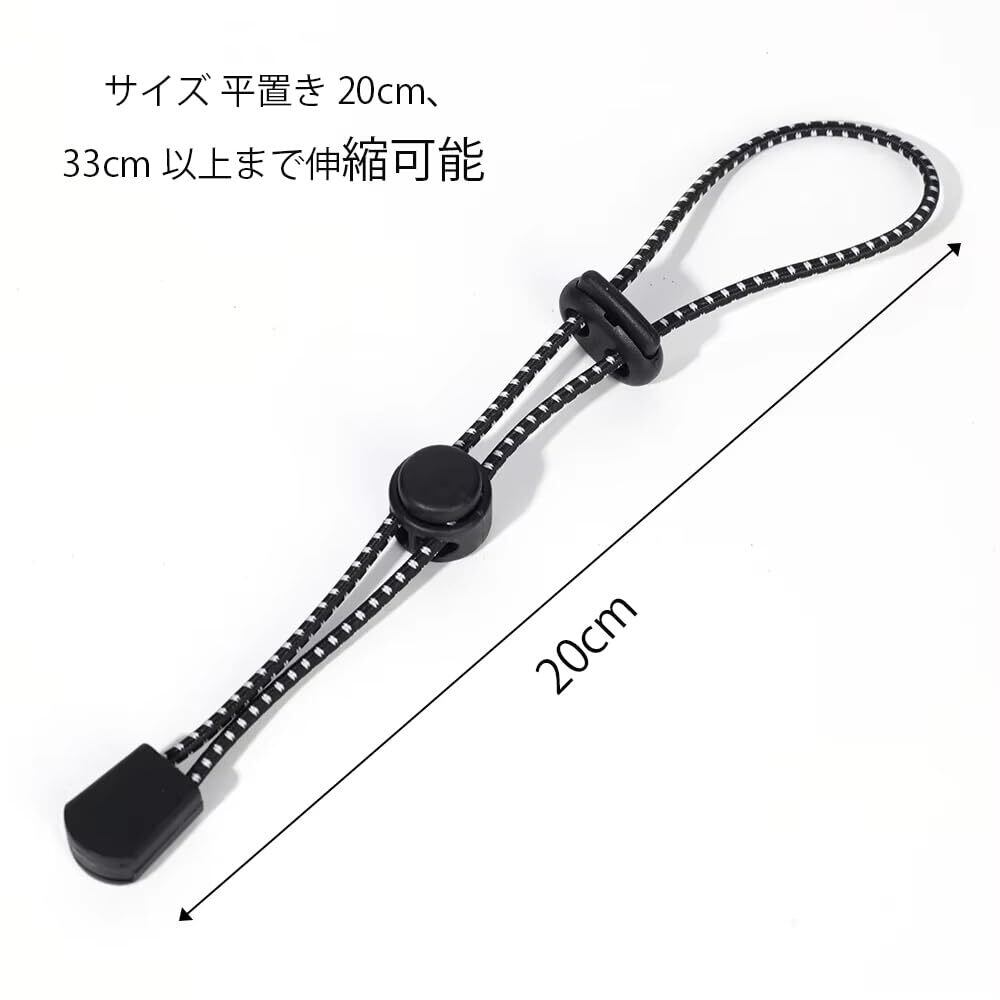 20cmの長さで、軽量かつ持ち運びに便利な登山用ポールホルダーロープ。ゴム紐とプラスチック素材で作られており、耐久性に優れています。リュックに簡単に固定できるので、登山やキャンプに最適です。