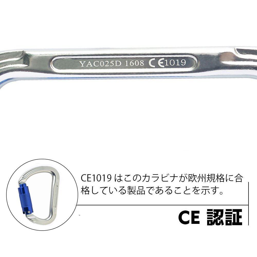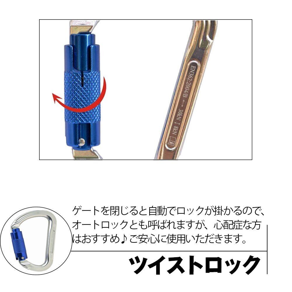 登山カラビナ オートロック式 HMSカラビナ キーロックカラビナ 30KN CE認証 ツイストロック(クイックロック)付き 脱落防止 線径14.0mmX114 3点セット