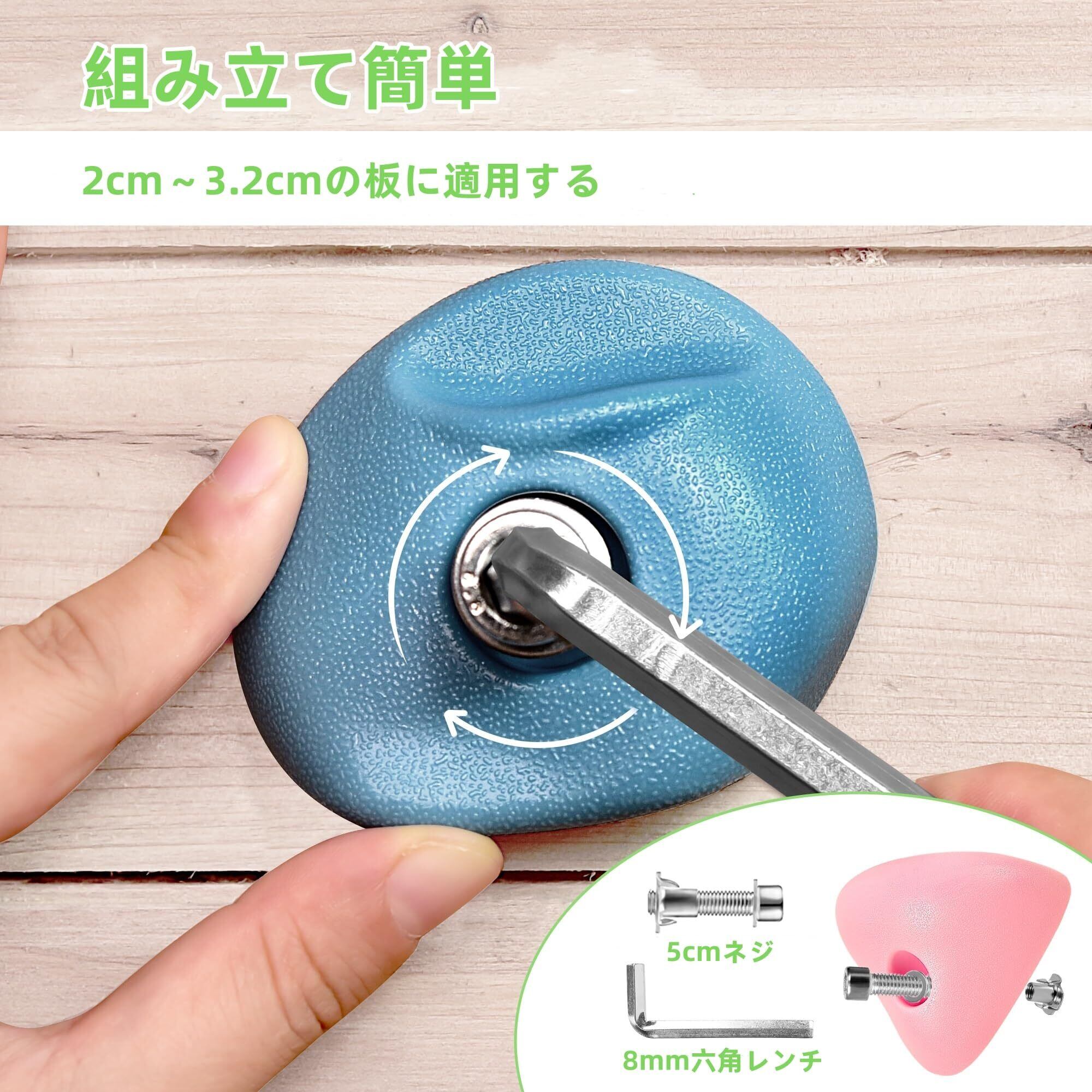 【商品内容】クライミングホールド*32、ボルト(50mm)*32、ワッシャー*32、爪付きTナット*32、六角レンチ*1があります。ご注意:厚さが2インチを超えない壁に取り付けることができます。( 注意:図に書いてある寸法をよく見てください。)