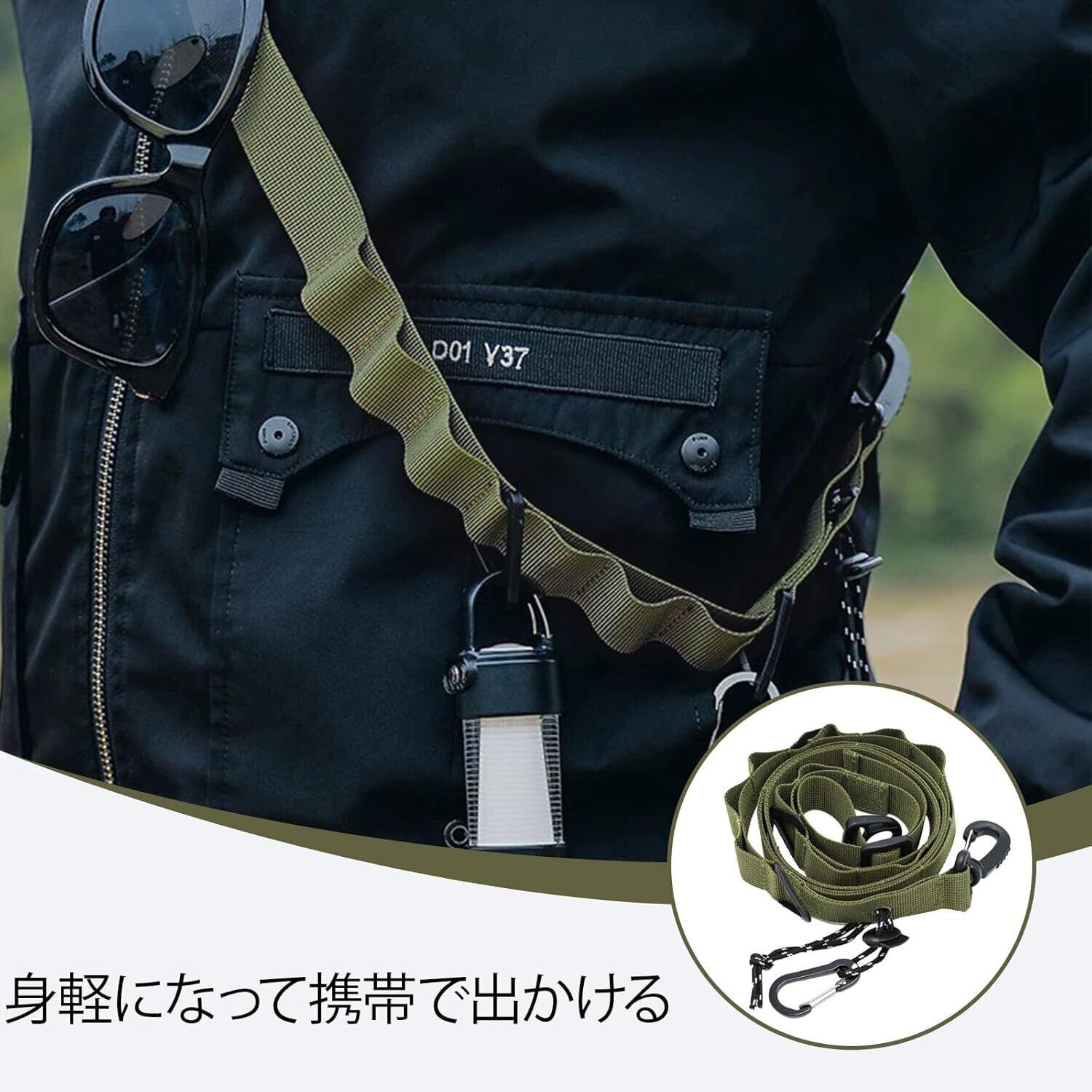 【リールアラウンドキャリング】:長さ1.3メートルで、ギアを体に巻き付けて持ち運ぶことができます。24個の多機能ハンギングポイントを装備し、自由に組み合わせることができます。