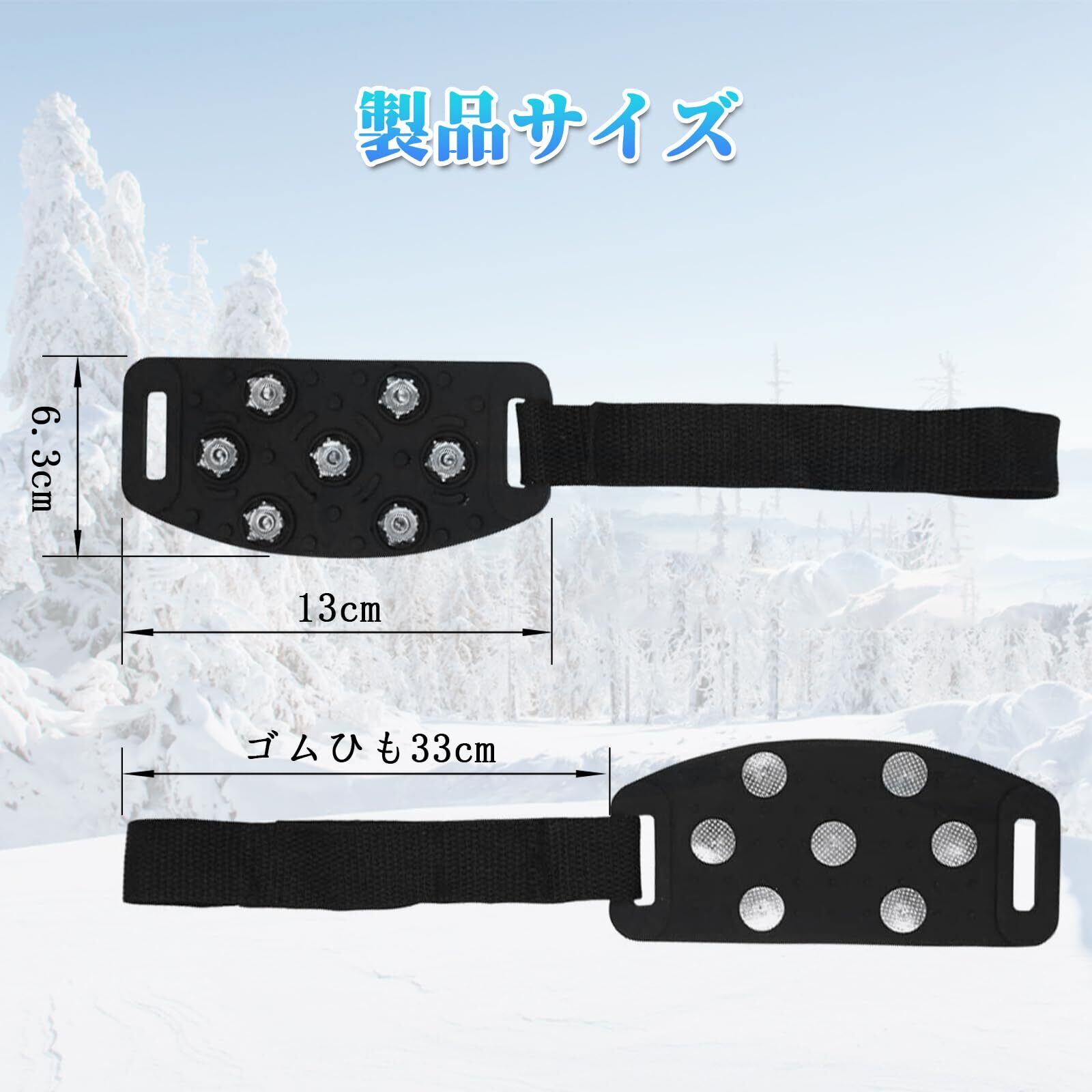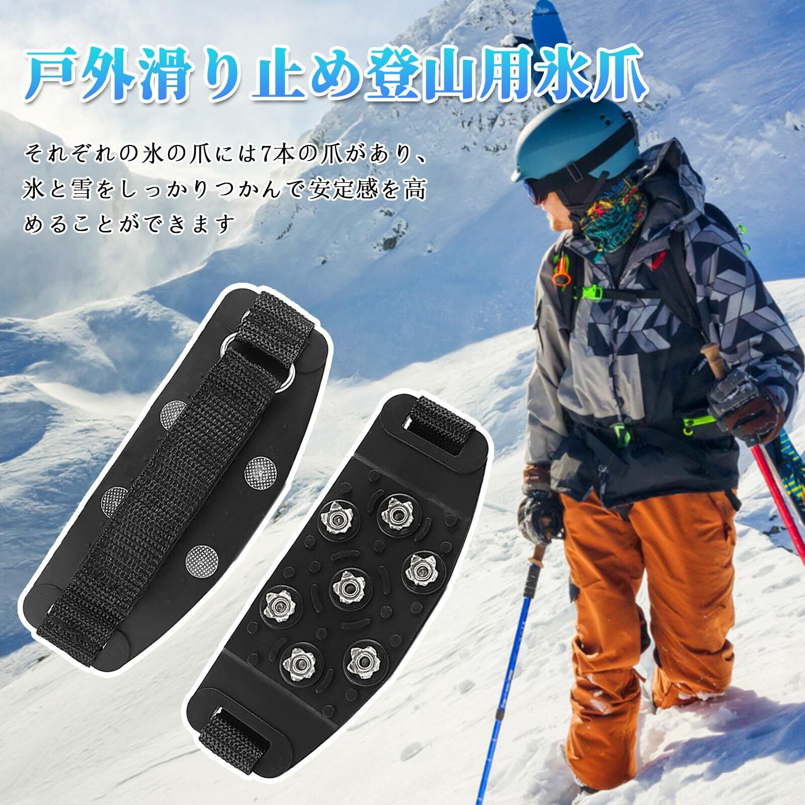 アイゼン滑り止め 着脱式スパイク スノースパイク 靴底用滑り止め スパイク転倒防止、軽量、簡単で素早く装着可能、あらゆるタイプの靴に適応、ハイキング、釣り、ウォーキング、凍結した雪面や急斜面での作業にも対応