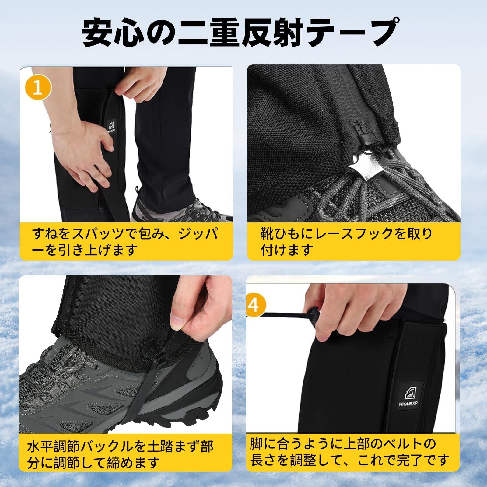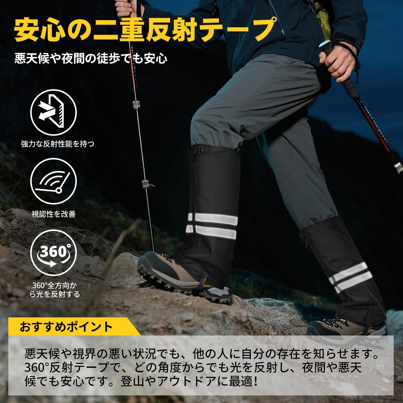 ゲイター 登山用 防水・防雪・防砂 ロングゲイター 軽量 高耐久性 登山スパッツ メンズ レディース 通気性 TPUストラップ 反射材付き アウトドア・バイク・ハイキング対応