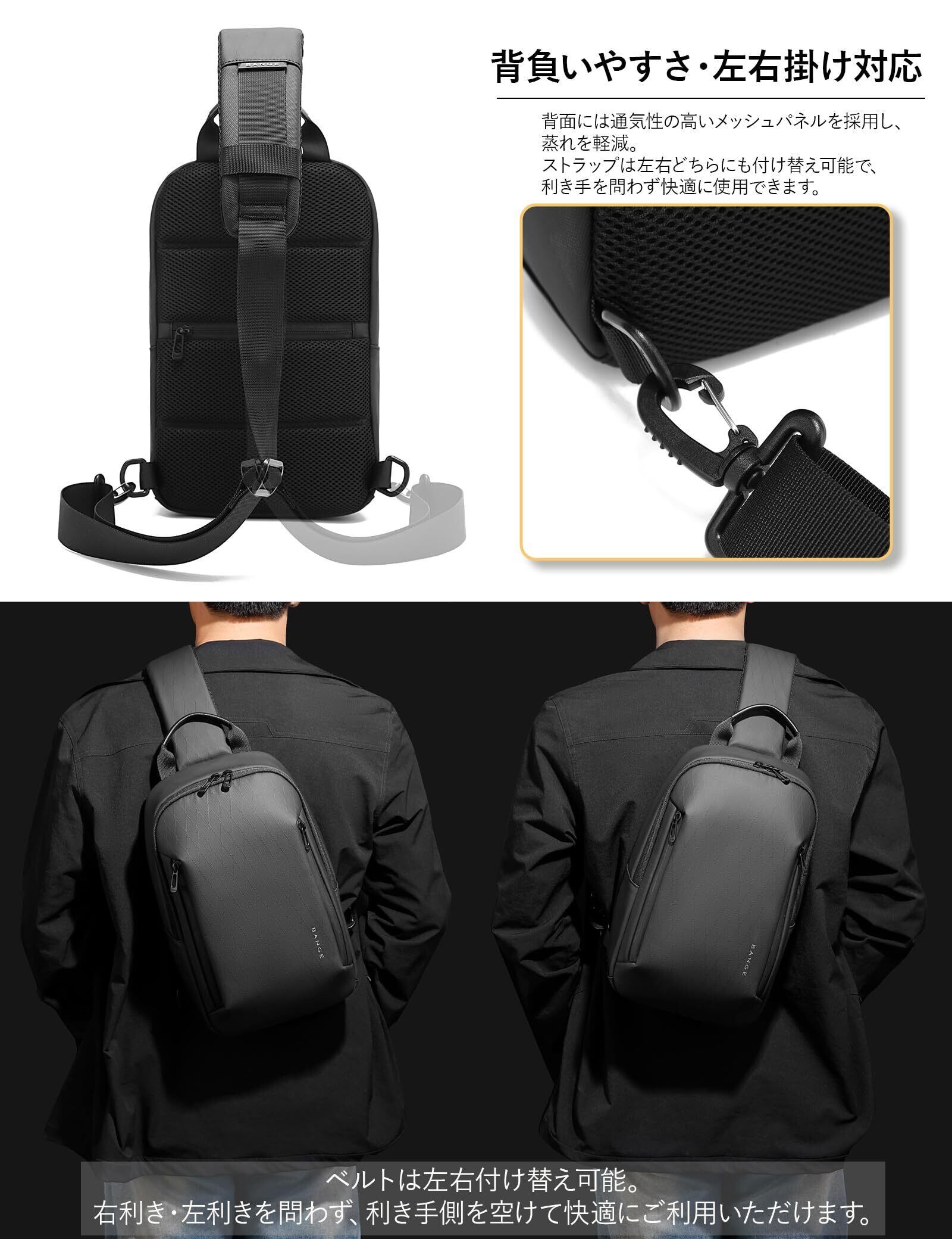 [Aerokyo] ボディバッグ メンズ 防水 斜めがけ ショルダーバッグ 軽量 11インチiPad収納 大容量 盗難防止ポケット 多収納 耐摩耗 通勤 旅行 自転車 アウトドア