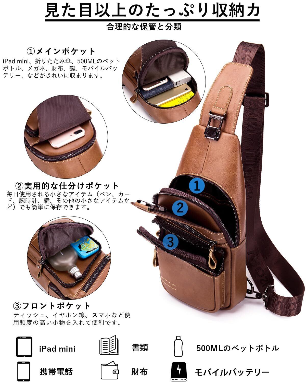 [DOOMUS] ショルダーバッグ メンズ 斜めがけ 本革 ボディバッグ 防水 肩掛けバッグ iPad収納可能 通勤