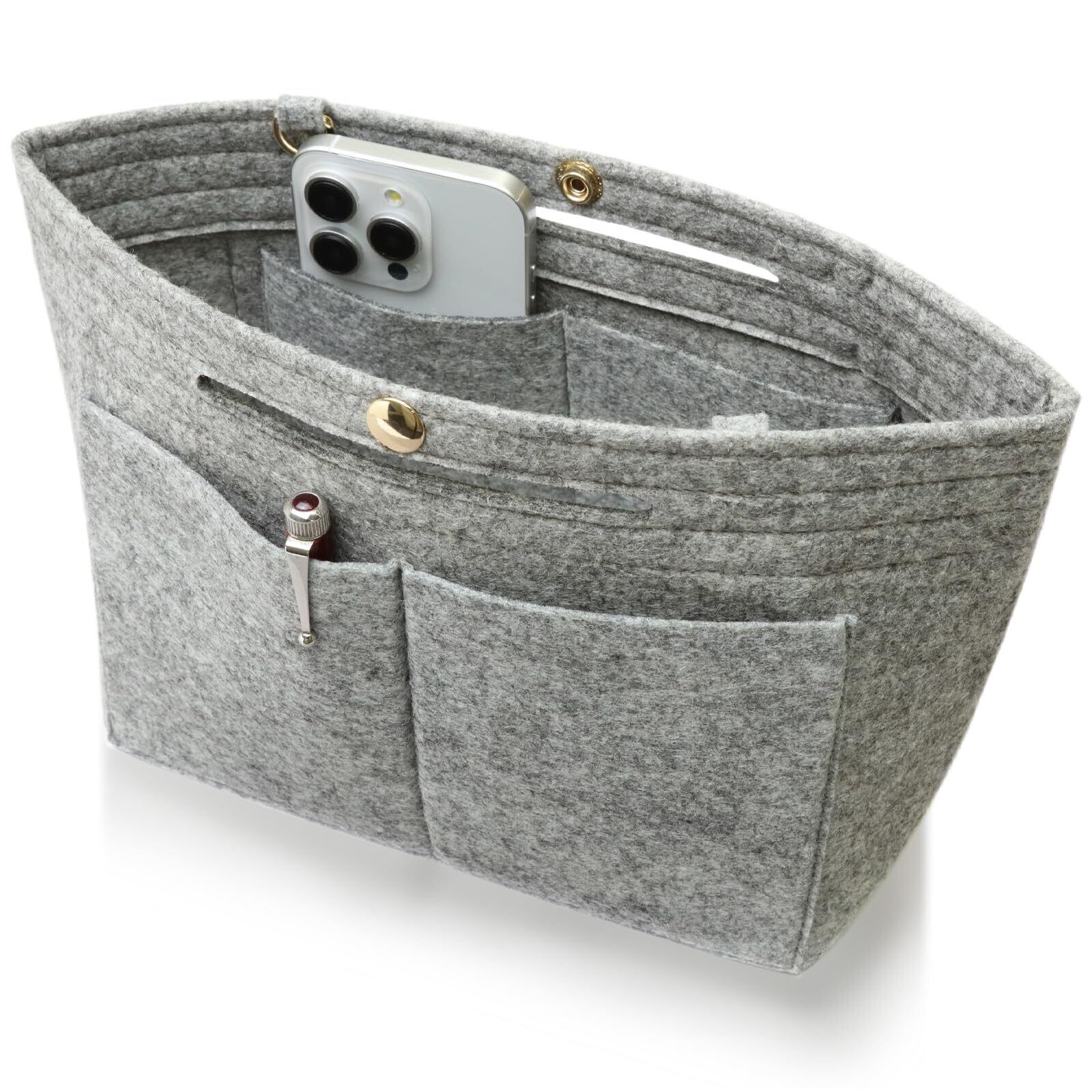 【しっかりとした張りのあるフェルト素材】素材がしっかりしているので、バッグの型崩れ防止になります。 底板を使用するとしっかりと自立するので更に安定感もバッチリです。こちらの底板は再生材料で製造されております。当店のバッグインバッグは、中身を仕分ける仕切りとして機能し、自立しない柔らかいバッグをサポートします。超軽量フェルト素材で作られており、さまざまなカバンに適しています。この素材は自立性が高く、バッグの中での出し入れが非常に簡単です。柔らかいバッグを使うときも、このインナーバッグを中に入れることで、しっかりと自立し、より一層使いやすくなります。バッグの持ち替え時にも中身を簡単に移せるため、忙しい日常でも大活躍します。