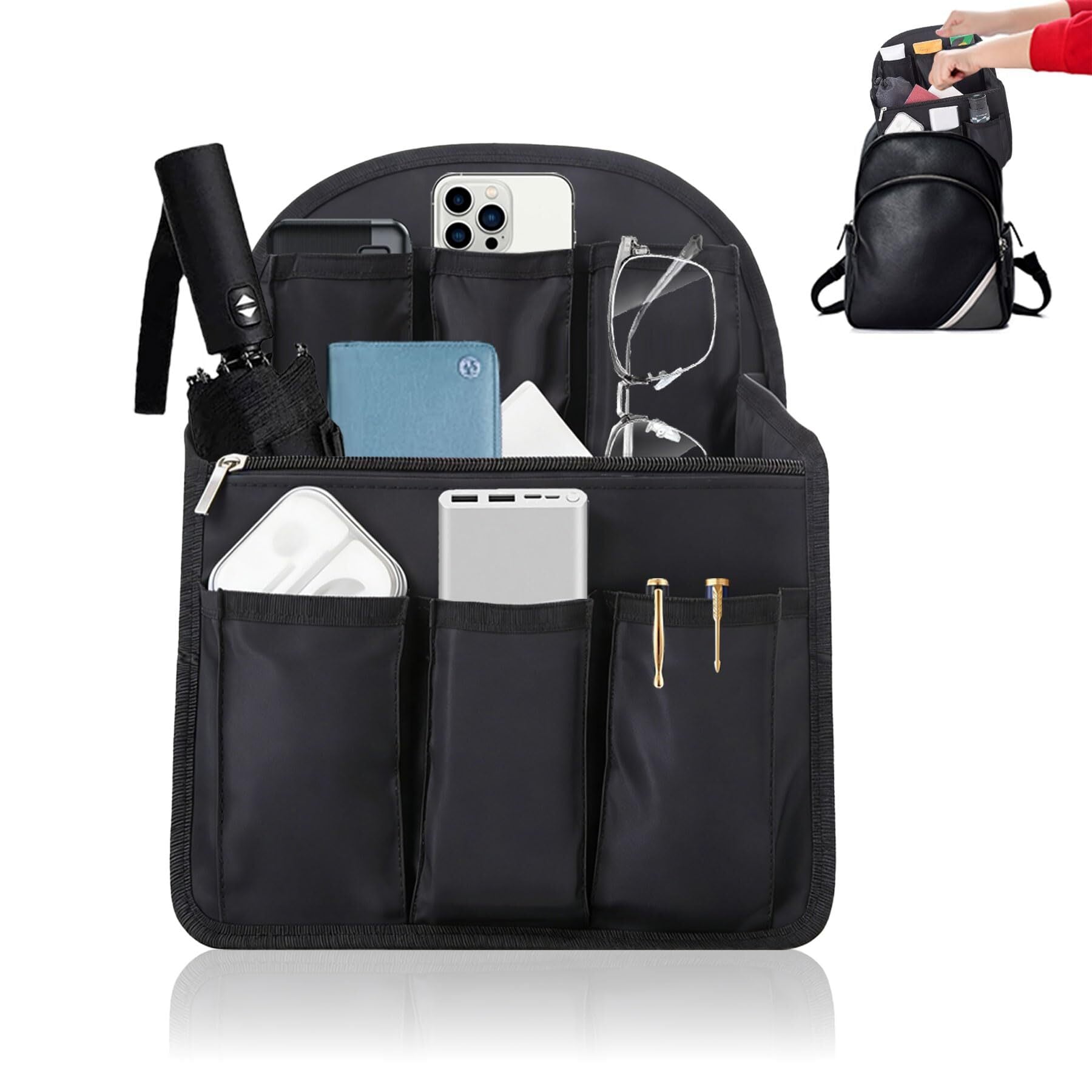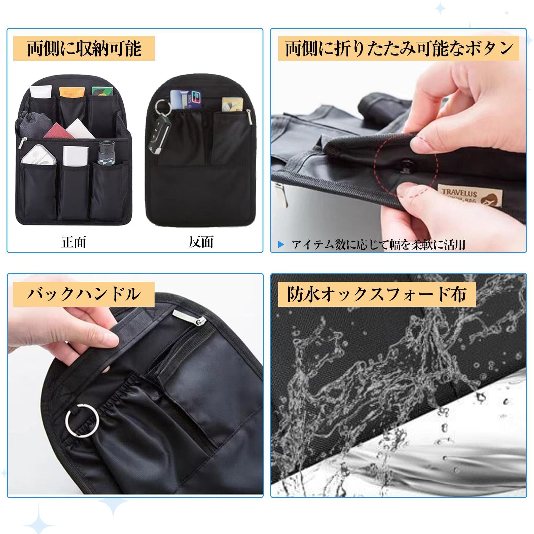 バッグインバッグ インナーバッグ リュックインバッグ リュック用 軽量防水収納 バックパックの内ポケット バッグ バッグインバッグ 化粧ポーチ 保管分類 16ポケット ポーチ (ブラック, L)
