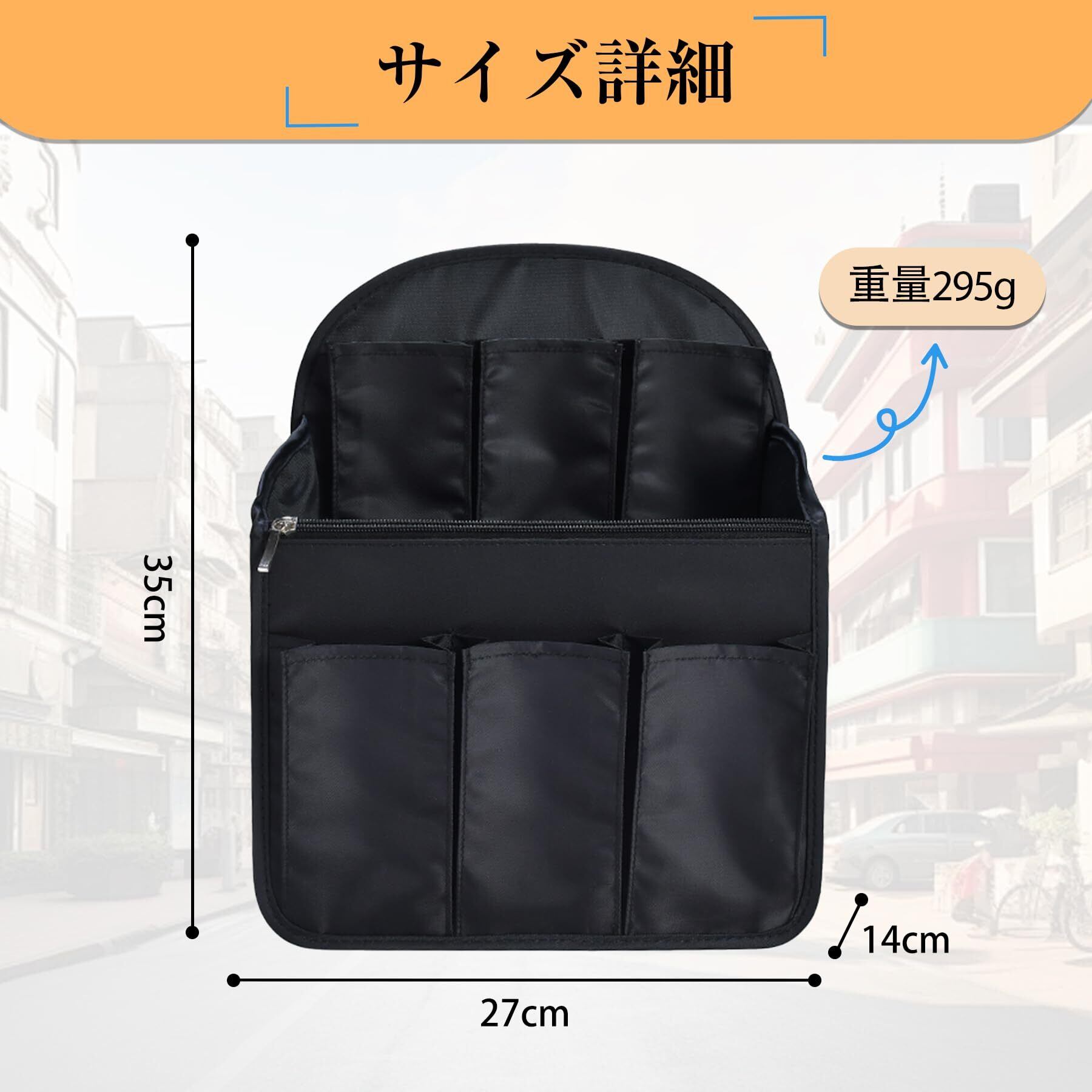 【整理しやすい】サイズ:高さ35cm、幅27cm、奥行き14cm、重さ295g。リュックやハンドバッグの中で散らかりやすい小物を簡単に整理でき、中身をすっきりと整頓できます。