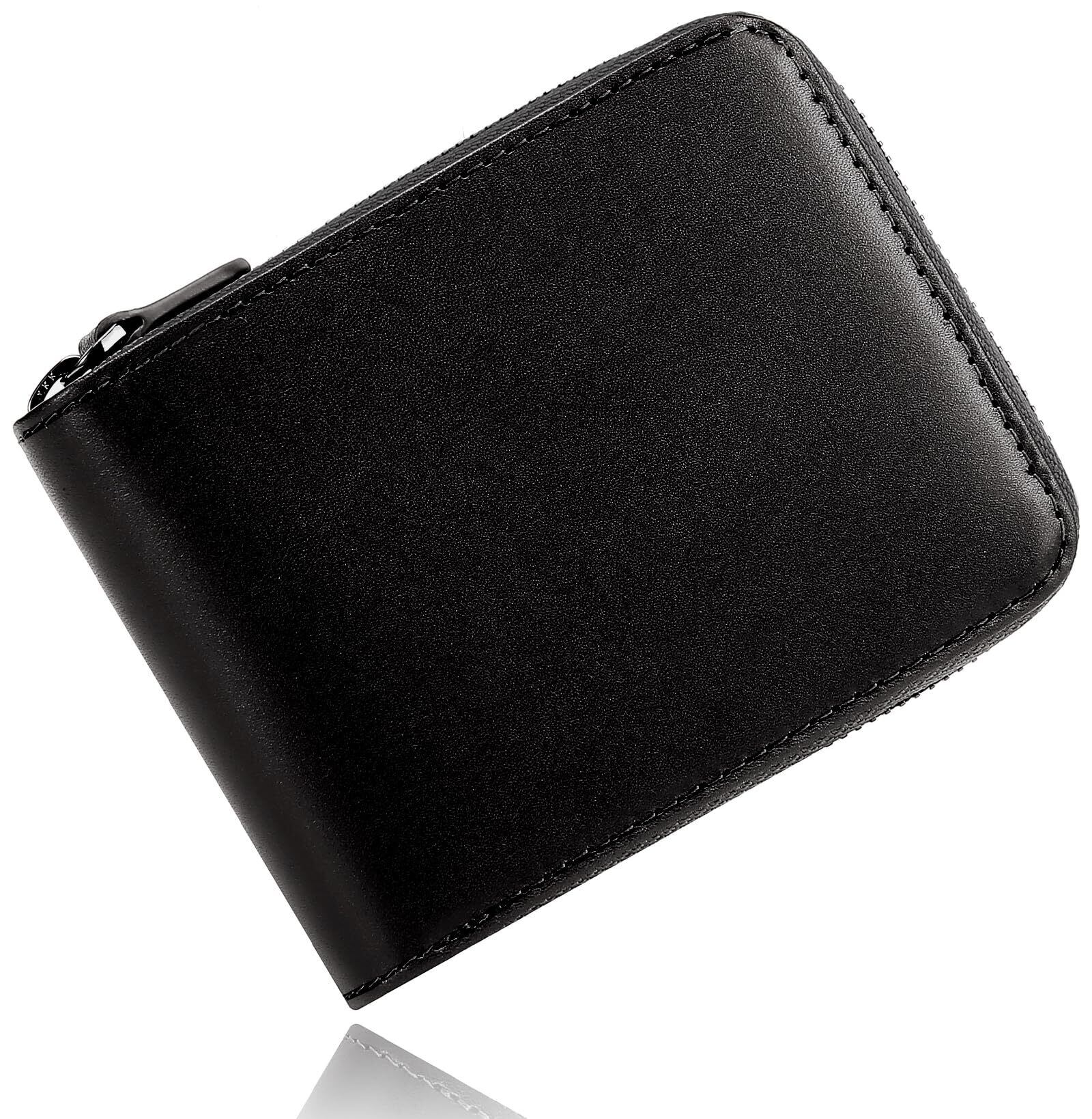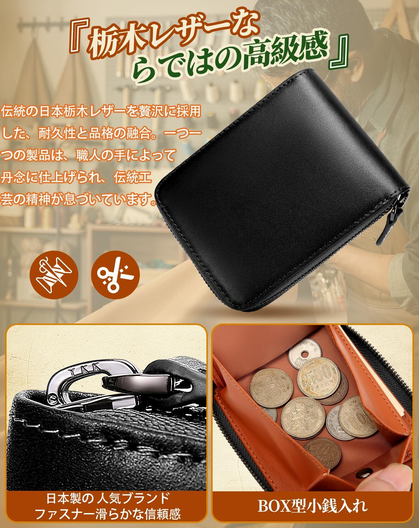 栃木レザー 財布 メンズ 二つ折り BOX型小銭入れ カード収納14枚 ラウンドファスナー ビジネス向け ギフトボックス付き