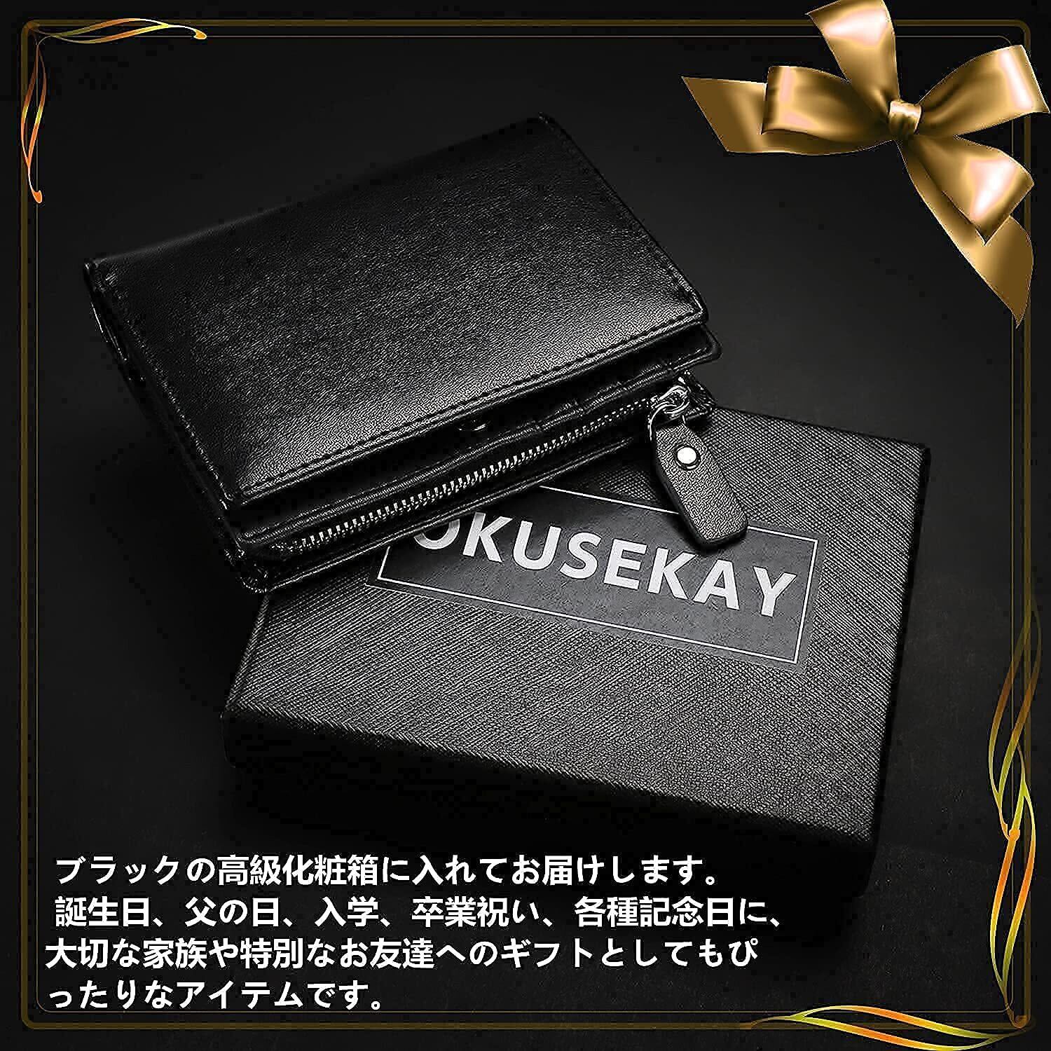 [OKUSEKAY] 財布 メンズ 二つ折り 本革 【3代目】 大容量 L字型ファスナー小銭入れ 軽量 防水 折りたたみ財布 ふたつおり ビジネス ギフト 父の日 プレゼント (ブラック)
