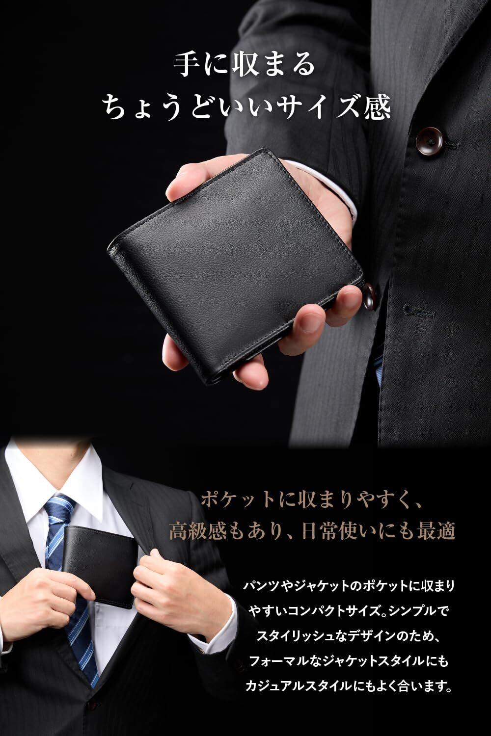 【手に収まるちょうどいいサイズ感】パンツやジャケットのポケットに収まりやすいコンパクトサイズで、日常使いにも最適。高級感のあるシンプルでスタイリッシュなデザインのため、フォーマルなジャケットスタイルにもカジュアルスタイルにもよく合います。