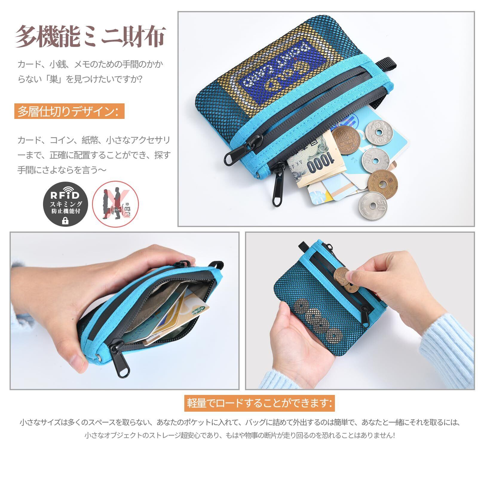【持ち運びに便利】財布の前面がメッシュ仕様になっており、一目で表裏の区別がつくので、うっかり開けても小銭がこぼれる心配がありません。また、自由に伸縮できるバネロープが付いているので、ハンドバッグに取り付けることができます!ビジネス、旅行、アウトドア、普段使いに最適です!シンプルで洗練されたデザイン。プレゼントにも最適です!